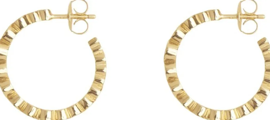 Et par mellemstore hoops, lavet i 925 sterling sølv og udsmykket med glitrende cubic zirconia-sten i forskellige størrelser.