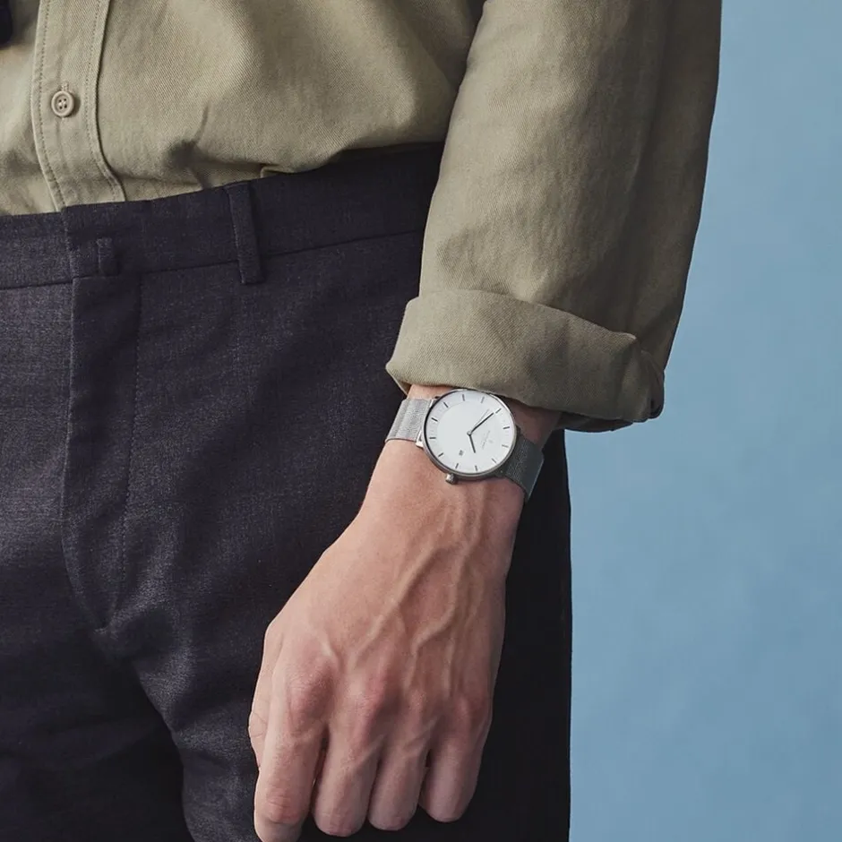 Philosopher, designet af Jakob Wagner, kombinerer subtilitet med styrke og udstråler minimalistisk elegance. De rene linjer, præcise detaljer og den asymmetriske sekundviser inviterer til nærvær i hvert øjeblik. Hævet på en konisk urkasse udstråler det tidløse design balance, selvsikkerhed og tilstedeværelse.