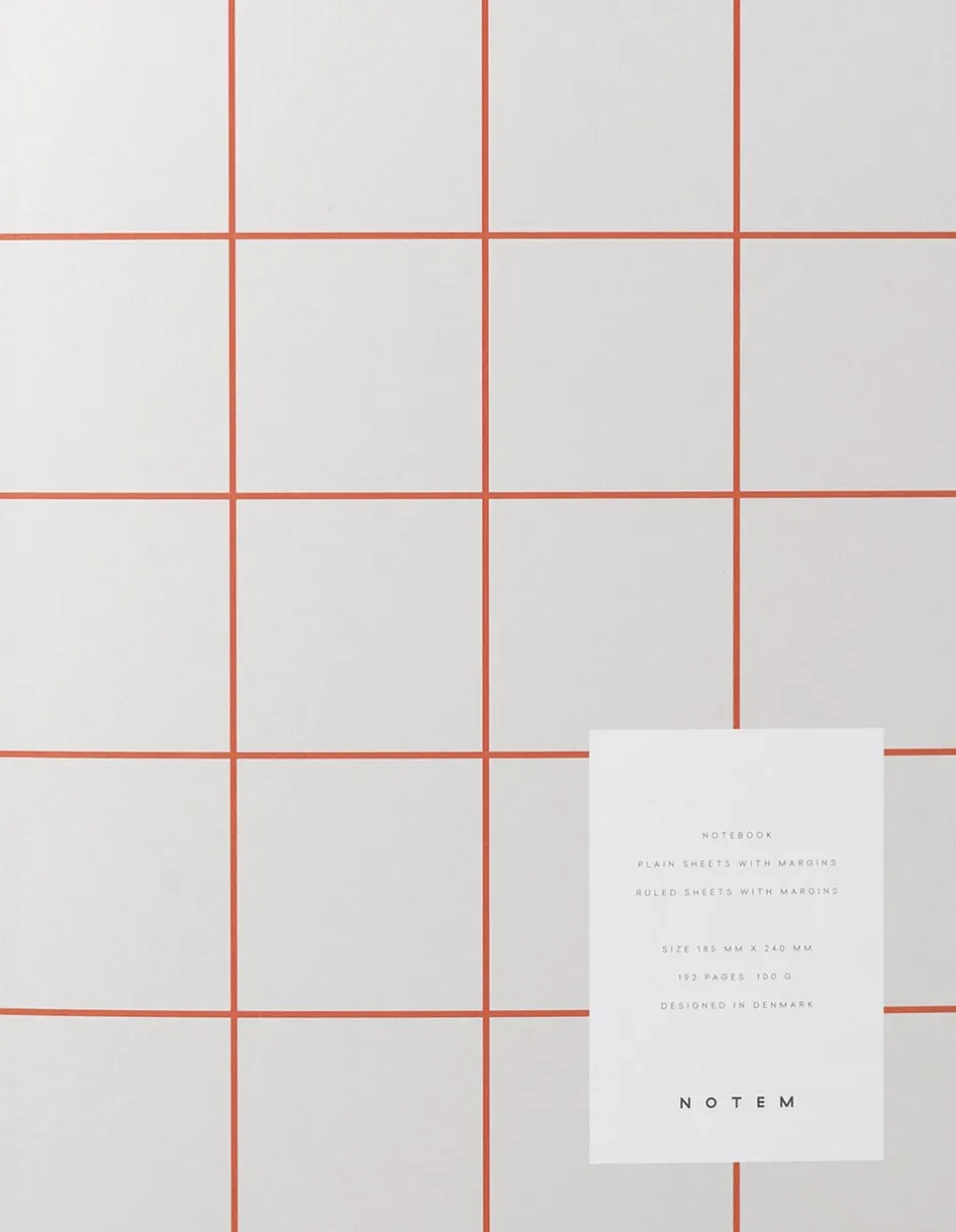 Softcover notesbog fra Notem Studio. Bogens ryg er syet og ikke fæstnet til coveret, hvilket giver en plan flade at skrive og tegne på. Indhold: 160 sider, blank venstreside, linjeret højreside. Farve: Lys Grå. Mål: 185 x 240 mm. Designet i Danmark, produceret i Europa.