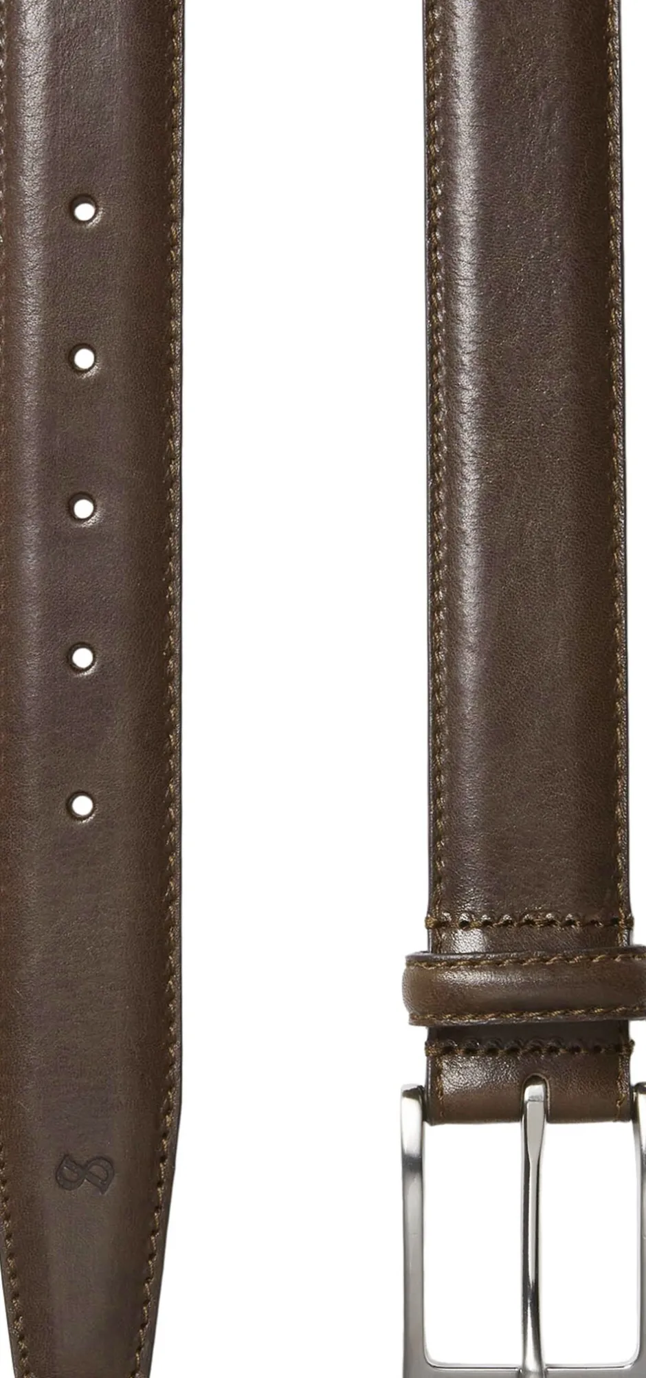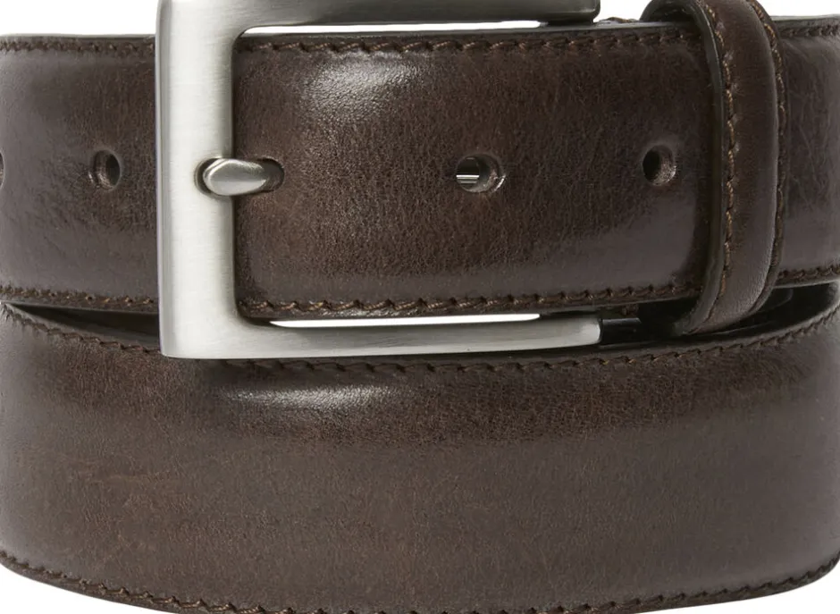 Klassisk herrebælte i ægte læder med stikning fra SADDLER. 35mm bredt med spænde i børstet sølvfinish. Bæredygtigt produceret i Italien. Egner sig til både business, jeans og casual brug. Den høje kvalitet på læderet gør at det kun bliver flottere med tiden. Bæltelængden er målt fra bæltespændet til midterste af de 5 huller.