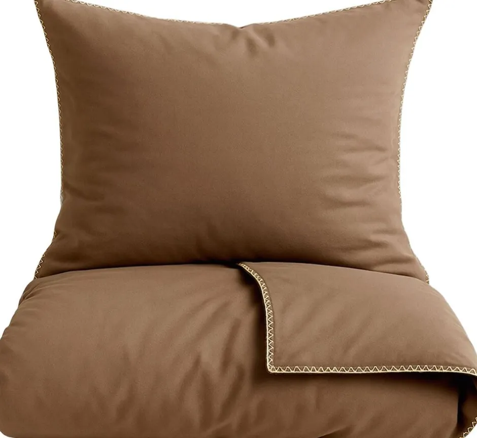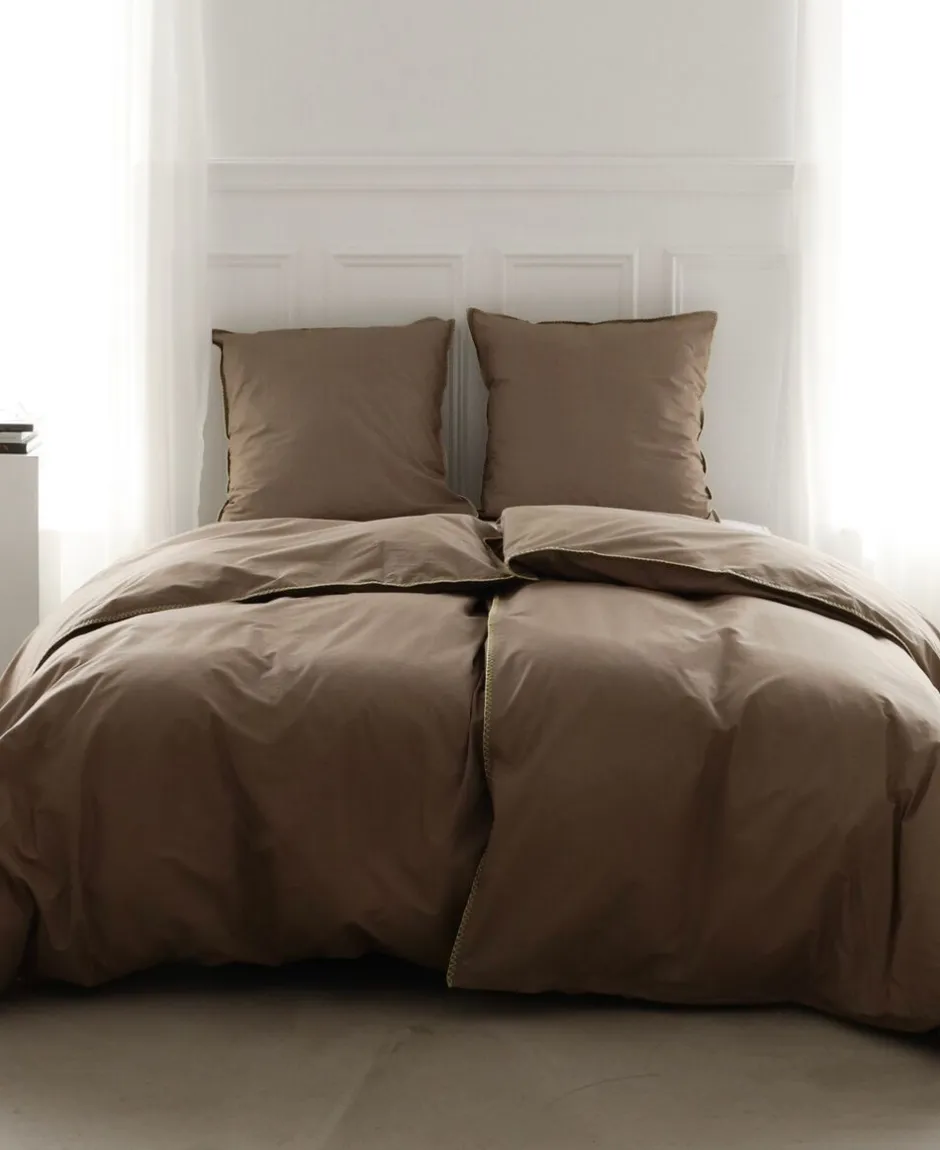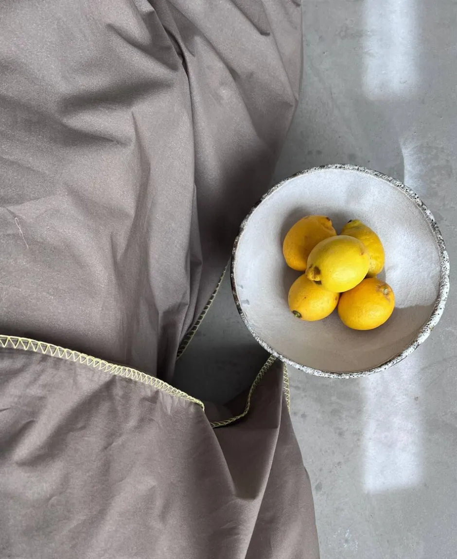 OMHU X MADS BARFOD SENGELINNED, EDGE Sengesættet er fremstillet i 100% økologisk bomuldspercale TC 200. Percale er en klassisk tæt lærredsvævning og vil give oplevelse af knitrende touch, som at sove på et lækket hotel. Samarbejdet mellem omhu og Mads Barfod har haft en fælles vision om at skabe noget, der både repræsenterer Mads´ kreative stil og passer perfekt ind i omhu´s værdier og univers. Kompromisløs tilgang til kvalitet i økologisk bomuld samt ansvarlig produktion. Det har været vigtigt at skabe noget, der føles tidløst, men også har et kunstnerisk udtryk. Flere dele af Mads Barfod´s kollektion er gennemsyret af inspiration hentet fra tyrkiske bade med fliser og vand. Oplev på dette sengesæt et ensfarvet design, som brydes med en kontrastfarvet overlock stikning langs betrækkenes kanter. Alt sammen i det bedste håndværk, og i GOTS FairtradeSvanemærket-Oeko-tex og SA8000 certificeret økologisk bomuld, hvilket er din forsikring om, at det er tekstil af højeste kvalitet og med omtanke for miljøet! Både pude- og dynebetræk har skjult YKK lynlåslukning.