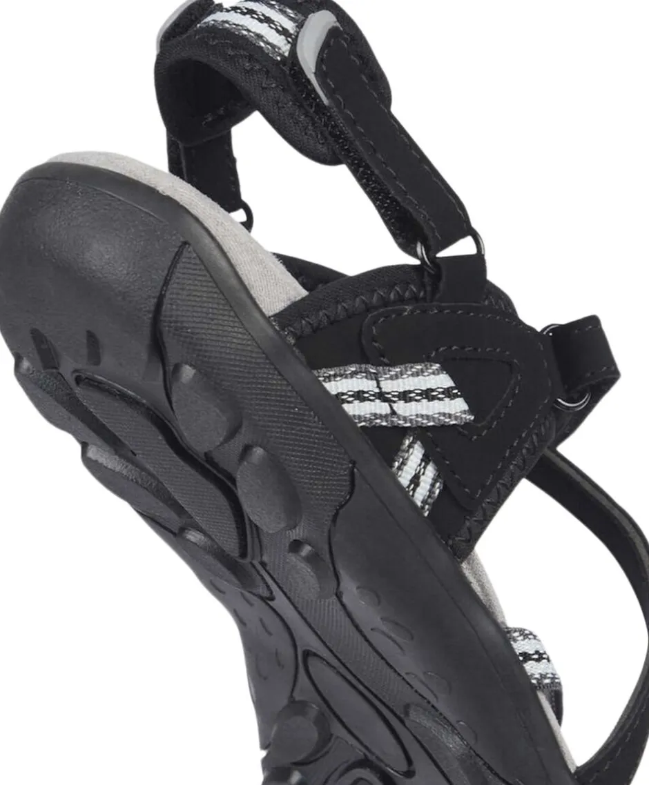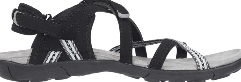 McKinley Ahtra Sandal er den ideelle følgesvend til udendørs eventyr og vandreture. Disse sandaler er designet til at give komfort og alsidighed under forskellige terrænforhold. De har en åndbar og holdbar overdel, der giver god ventilation og beskyttelse mod elementerne. Den justerbare rem ved vristen sikrer en tætsiddende og behagelig pasform, mens den polstrede indersål tilbyder ekstra komfort under lange vandreture. Ydersålen er lavet af skridsikkert gummi, der giver godt greb på forskellige overflader og forhindrer glid. McKinley Ahtra Sandal er lette og fleksible, hvilket gør dem nemme at pakke og transportere. Uanset om du vandrer i skoven, udforsker kysten eller bare slapper af i naturen, vil McKinley Ahtra Sandal være dine pålidelige følgesvende.
