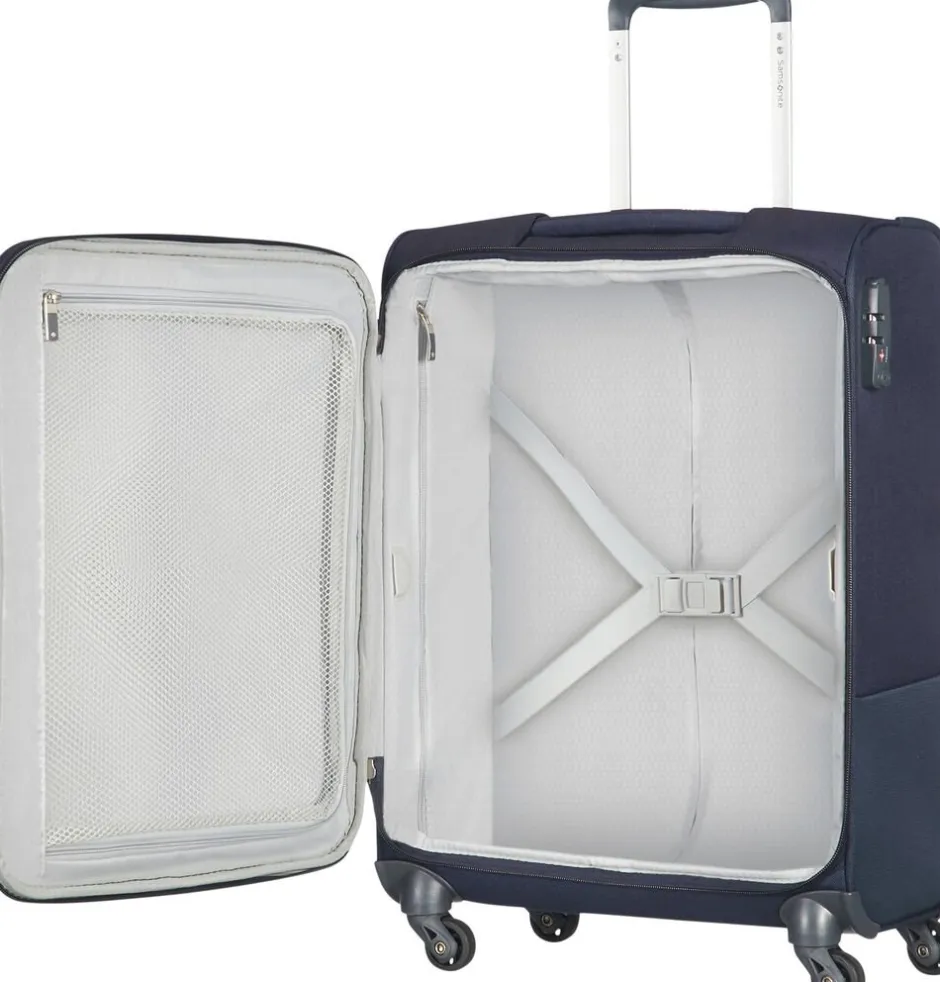 Super let kabinekuffert på kun 2 kg. Den har frontlomme, indvendigt lynlåslukning i låget og krydsbånd i både top og bund. TSA lås , navneskilt, 4 hjul, dobbelt trollystativ,rumindhold 39 l, 5 års garanti