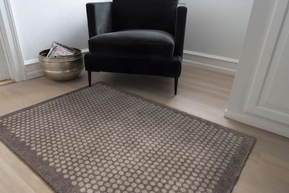 Den tætte lurv i 100% polyamid er hele 0,7 cm. tyk. Måtten/løberen er blød, slidstærk og suger fugt og snavs. Bagsiden er i vinyl, så den ligger stabilt på gulvet. De er praktiske og lette at rengøre. Kan maskinvask ved 30°C og kan støvsuges.