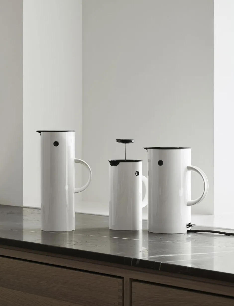 Erik Magnussens klassiske termokande EM77 har prydet kaffeborde verden rundt i over 40 år, og nu introduceres et helt nyt medlem af EM familien: EM77 elkedlen i stål. Den tilfører køkkenet et stilrent udtryk, og funktionelt komplementerer den både EM77 stempelkanden og EM77 termokanden. Elkedelen kan rumme op til 1,5 l. , og koger vandet hurtigt på et minimum af energi. EM77 Kedlen er udstyrret med et kalkfilter, og er ledningsfri, så den kan tages med på bordet.
