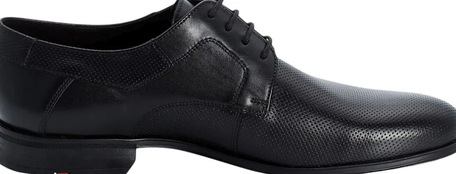 LLOYD “LEVIN” Derby-skoene, der er fremstillet af sort læder, imponerer med deres moderigtige stil. En elastisk gummisål og snørebånd er også standard