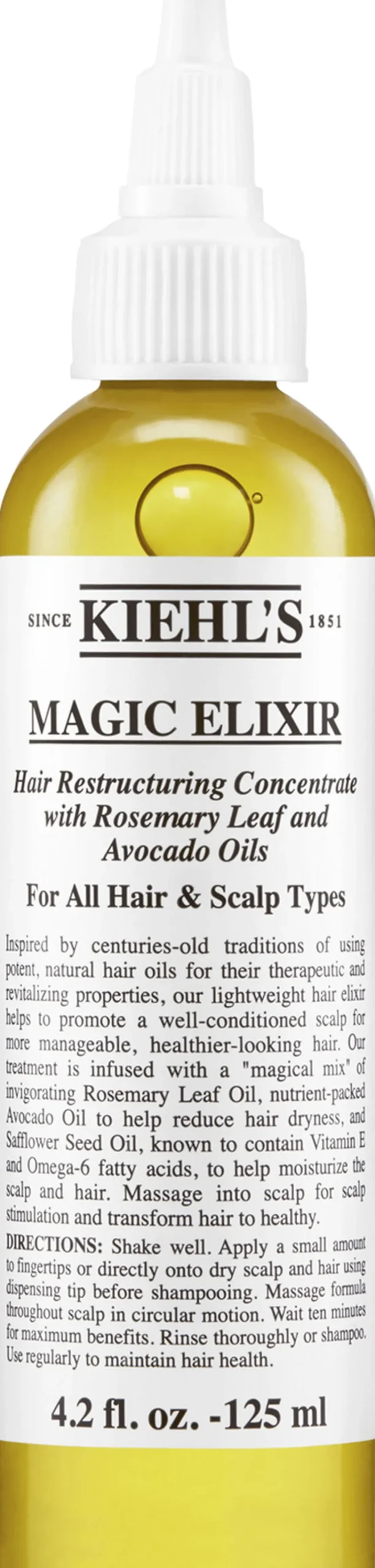 Kiehl’s Magic Elixir. Magic Elixir Hair Restructuring Concentrate med romarin og avokado. Ved regelmæssig brug, vil denne koncentration af naturlige olier trænge ind i hår og hovedbund og skabe grobund for et sundere hår. Koncentrationen blødgør, giver naturlig glans og genopretter fugtbalancen til hovedbund og hår.