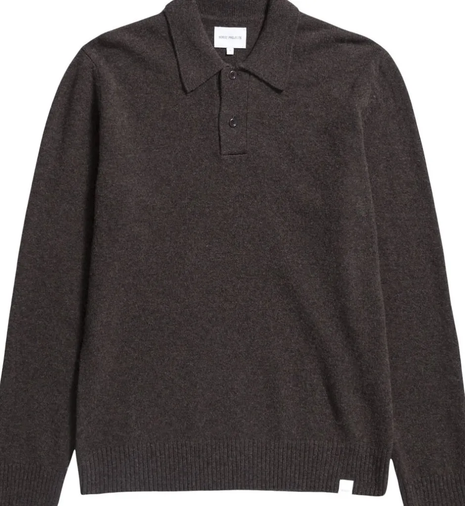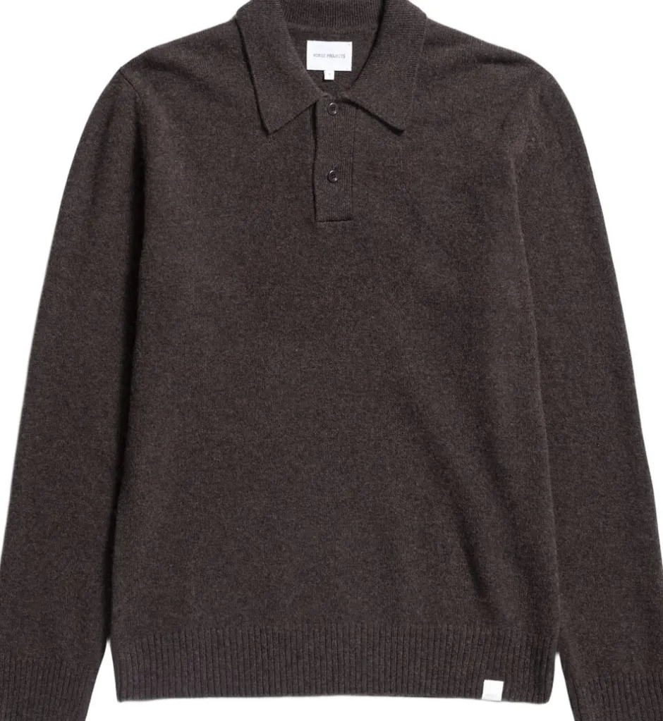 Den nordiske standard Merino Lambswool Polo, der er fremstillet i Italien, har indsatte ærmer, en fuld nålekrave, en stolpelukning med 2 knapper og 2×2 ribkanter ved kanten og manchetterne.