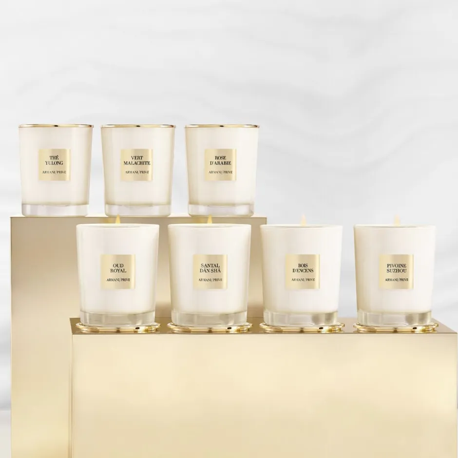 Sådan gør du: Armani/Privé-lysene indbyder til et duftritual, der forstærker duftoplevelsen. Ritualet begynder, når lysets elegante guldlåg tages af, og vægen trimmes, inden lyset tændes. Voksen begynder at smelte, og de fængslende Armani/Privé-dufte flyder ud i rummet. Efterhånden som duftens noter spreder sig i rummet, forstærker lyset duftens berusende virkning. Dette ritual fremkalder øjeblikkeligt en unik atmosfære og giver dem, der oplever Armani/Privé-lysene, en mulighed for at slippe væk fra dagen og nyde et opløftende øjeblik. Lyset kan sættes på guldlåget, mens det brænder, så designet kan vises frem. Når du bruger lyset første gang, skal det brænde, indtil overfladen er helt flydende, så overfladen forbliver jævn. Samtidig afspejler selv gestussen ved at slukke lysets flamme kollektionens elegance, da guldlåget kan placeres oven på lyset for nemt at slukke flammen. Hvis du lader det elegante låg sidde på, når lyset ikke er i brug, forhindrer du også, at der samler sig støv på voksen.