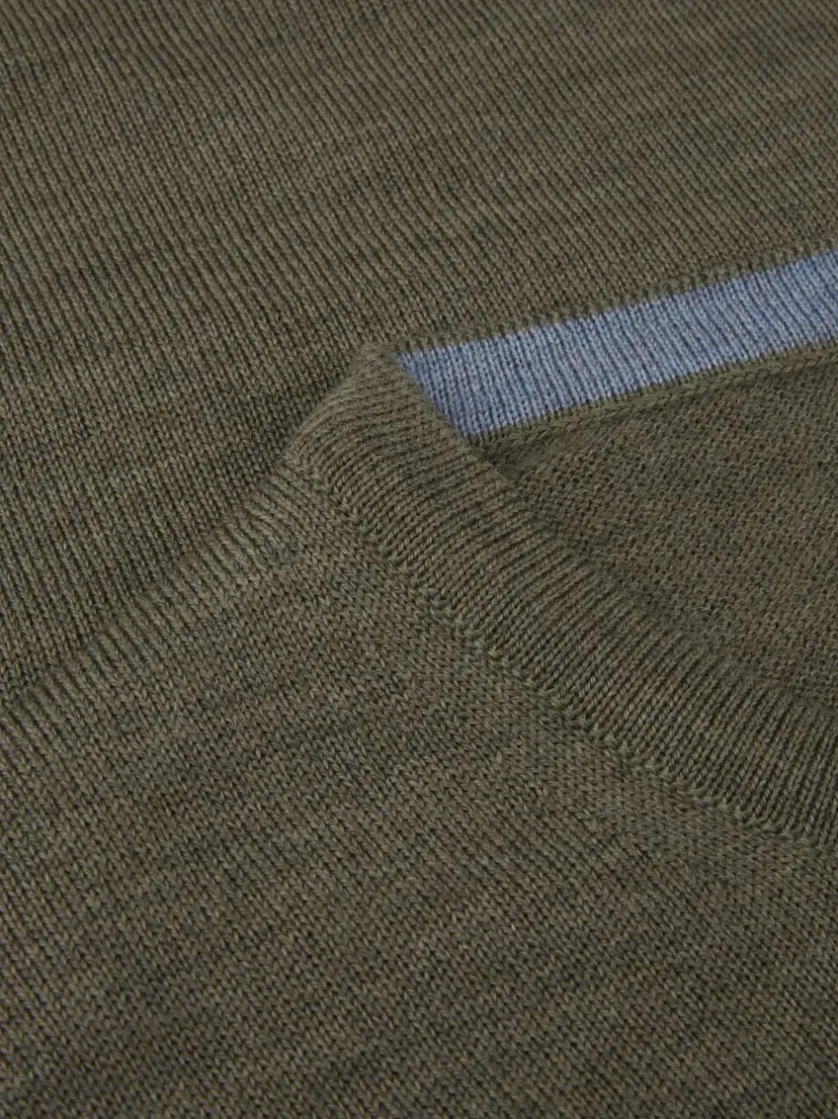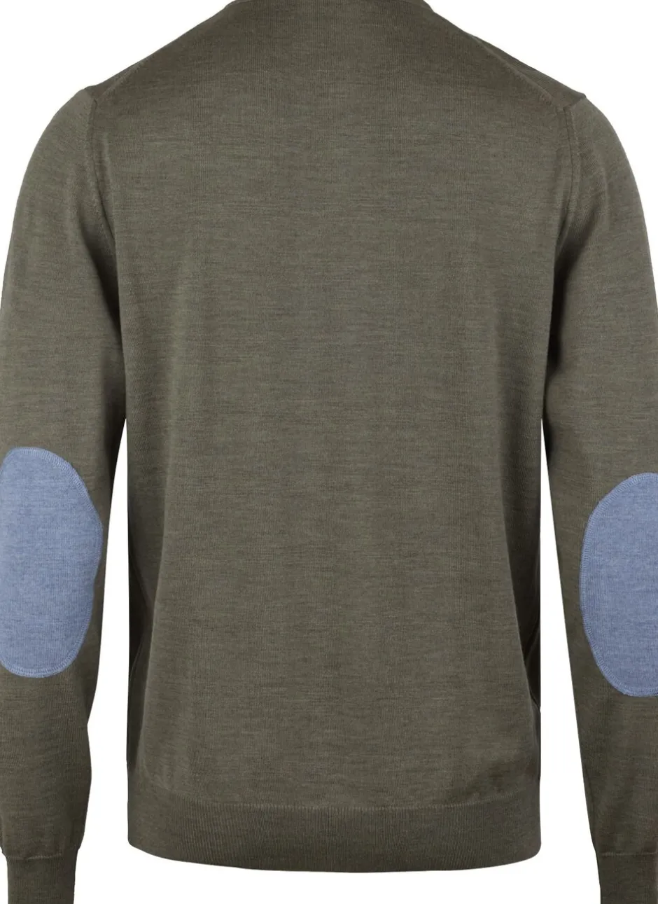 Denne sweater med rund hals er fremstillet i merinould og har albuelapper og ribstrikket hals, manchetter og kant forneden.