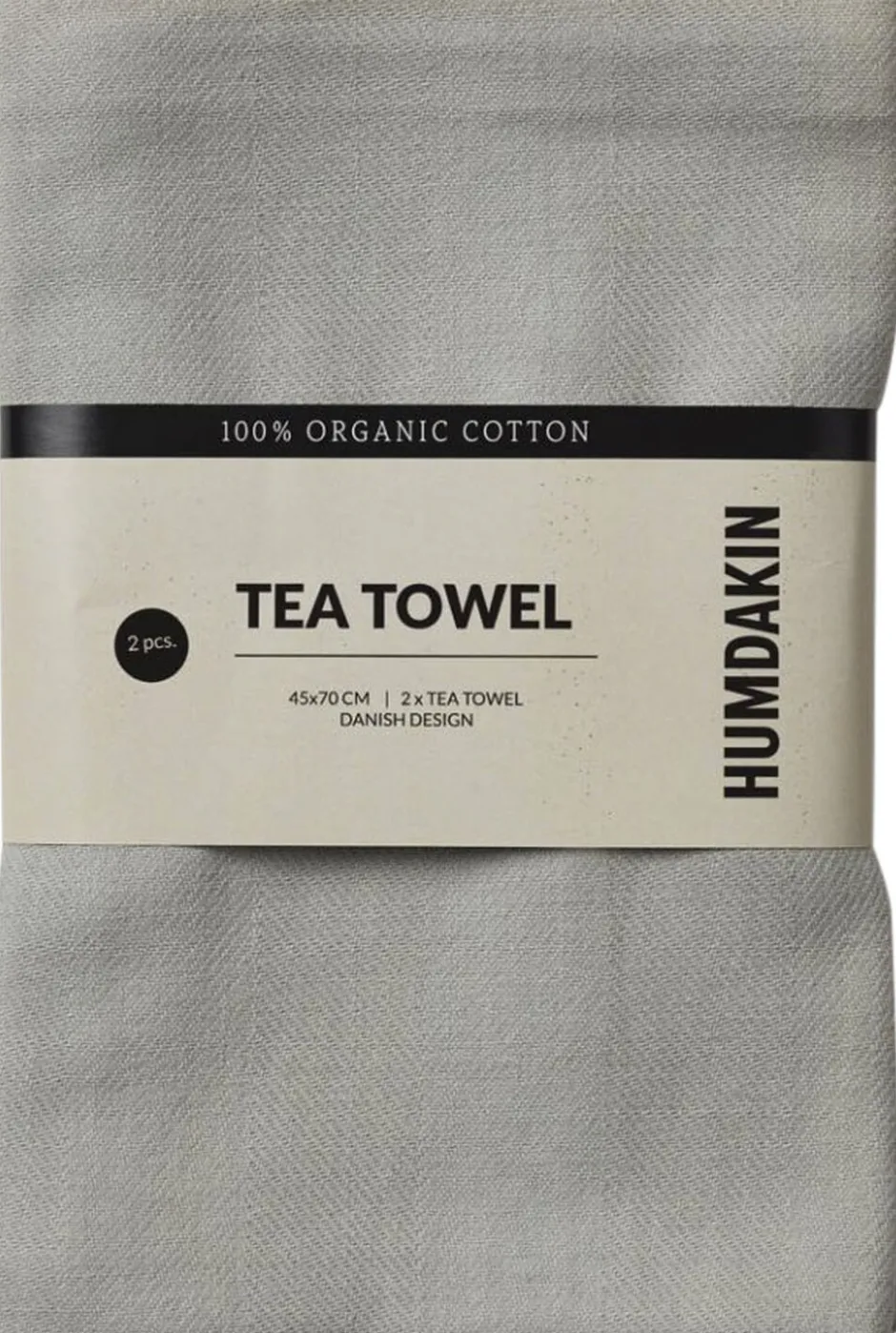 ORGANIC TEATOWEL Two tea towels made of 100% GOTS certified organic cotton.Tea towels in a beautiful soft fabric. The tightly woven fabric ensures excellent drying properties and long durability. The HUMDAKIN tea towels are functional and decorative accessories for your kitchen.Mix the tea towels with the different HUMDAKIN textiles and assorted colours for a beautiful and stylish home.- Wash at 60°C- The tea towels can be tumble dried.- For the fabric to maintain the best drying properties, do not use fabric softener.- For a lovely fresh scent, use the HUMDAKIN laundry soap when you wash your textiles.Measurement: 45×70 cm2 pcs.