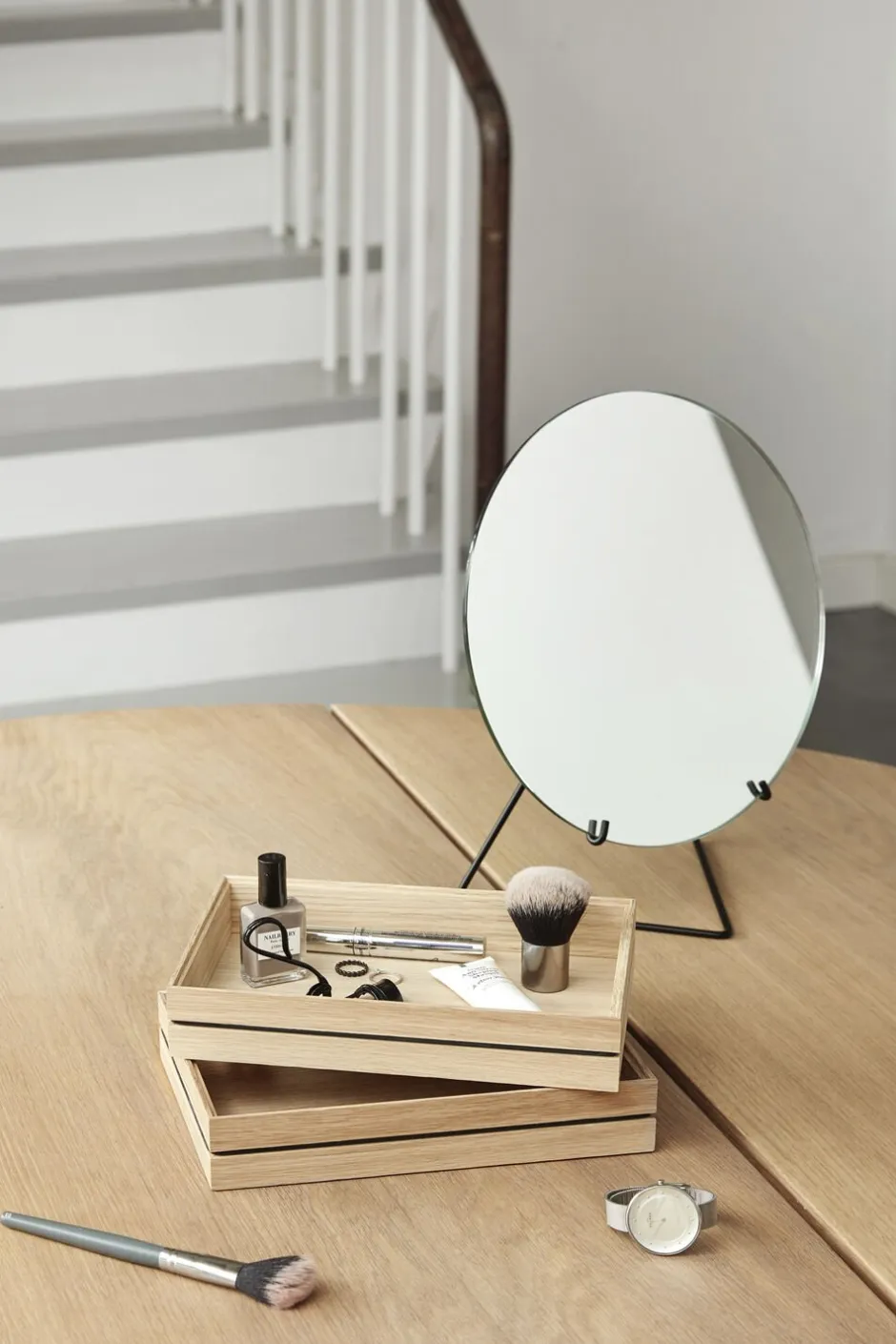 Each Organise is made of solid untreated oak and is held together by a single rubber band. Available in A4 and A5. Each size is stackable and compatible with the other. Works alone or combined together.