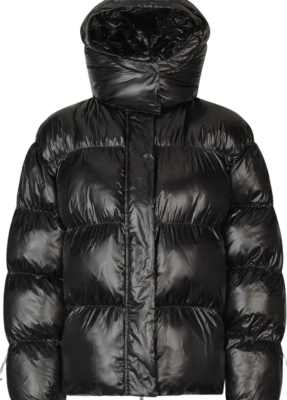 Pufferjakke med hætte. Fremstillet med Recycled polyamid og polstret fyld. De har en høj krave med stolpelukning, skjult lynlås og trykknaplukning foran. Aftagelig hætte, der fastgøres med lynlås, og to skjulte sidelommer. Elastisk snøre med stoppere i taljen og nederst på ærmerne og elastiske manchetter. Fuldt foret. Løs pasform med en voluminøs silhuet, der kan trækkes ind med snoretræk
