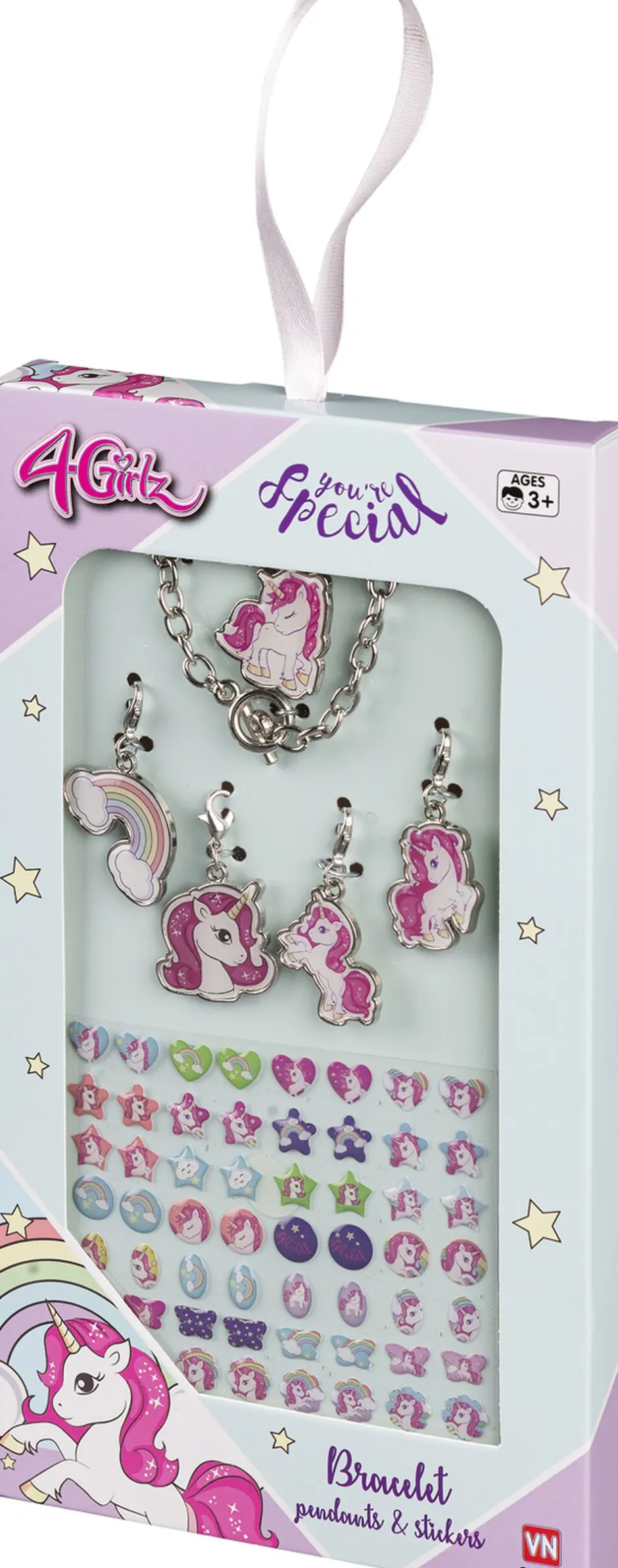 4-GIRLZ ARMBÅND-STICKERSm5 VEDHÆNG I W/B