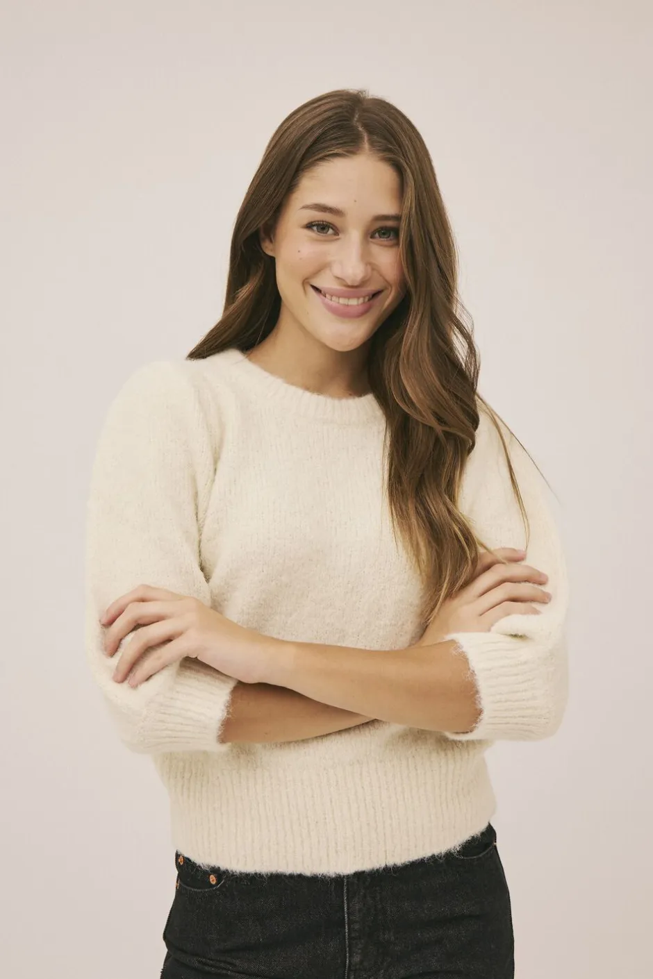 Pullover fra Magasin du Nord Collection i den lækreste kvalitet af 59% genanvendte fibre med GRS-certificering. Pulloveren er enkel i modellen med en lækker, finstrikket struktur, en rund halsudskæring, trekvartlange pufærmer, ribkanter samt en elegant, løs pasform. En skøn pullover i den blødeste kvalitet.
