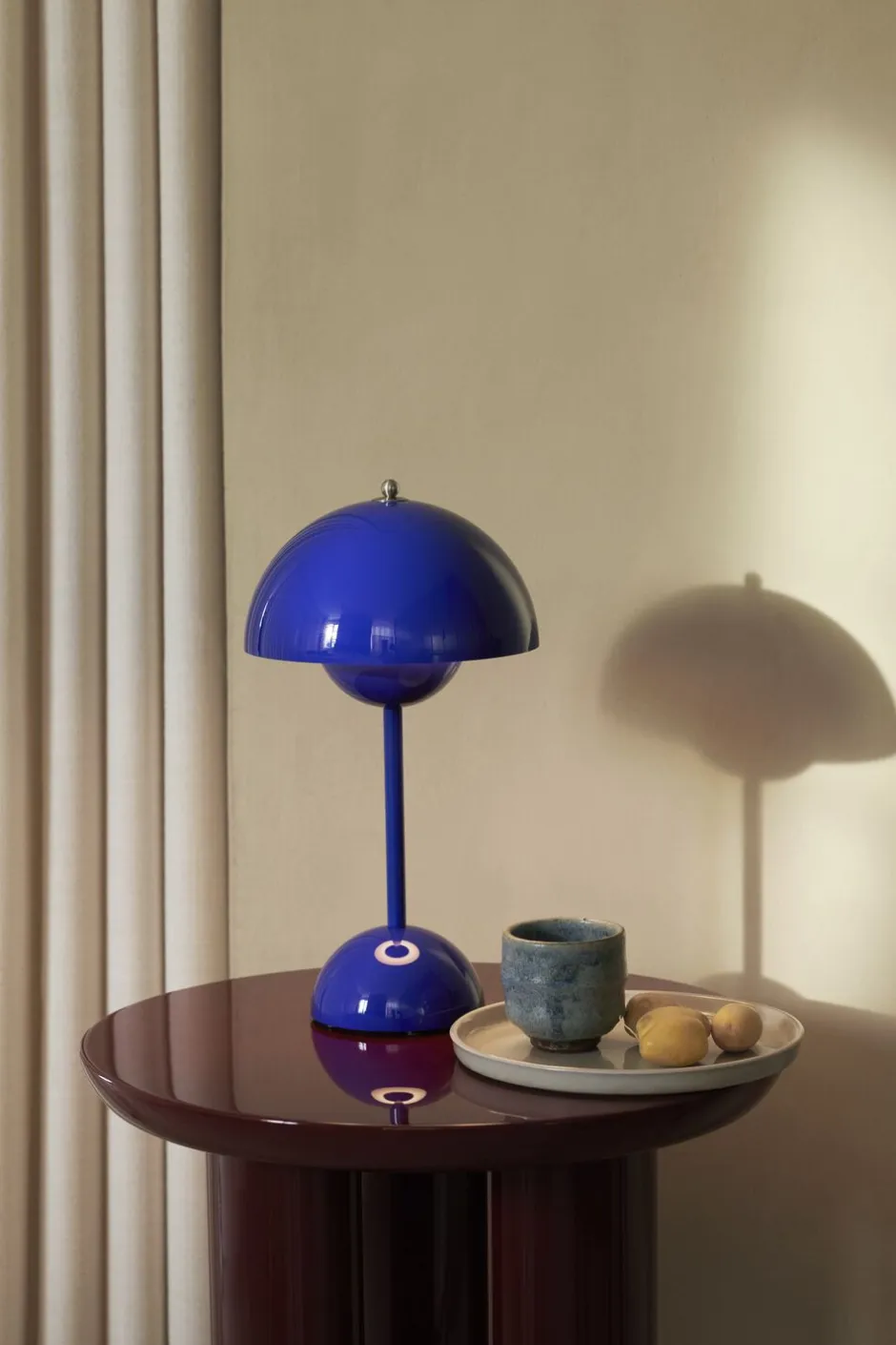 Flowerpot er designet af Verner Panton, som fandt inspiration til lampeserien i 60’ernes og 70’ernes Flower Power revolution. Flowerpot VP9 er en lampe du kan tage med dig, og er derfor ikke en helt almindelig bordlampe. Få lys hvor du har brug for det, også steder hvor der ikke er stikkontakt.