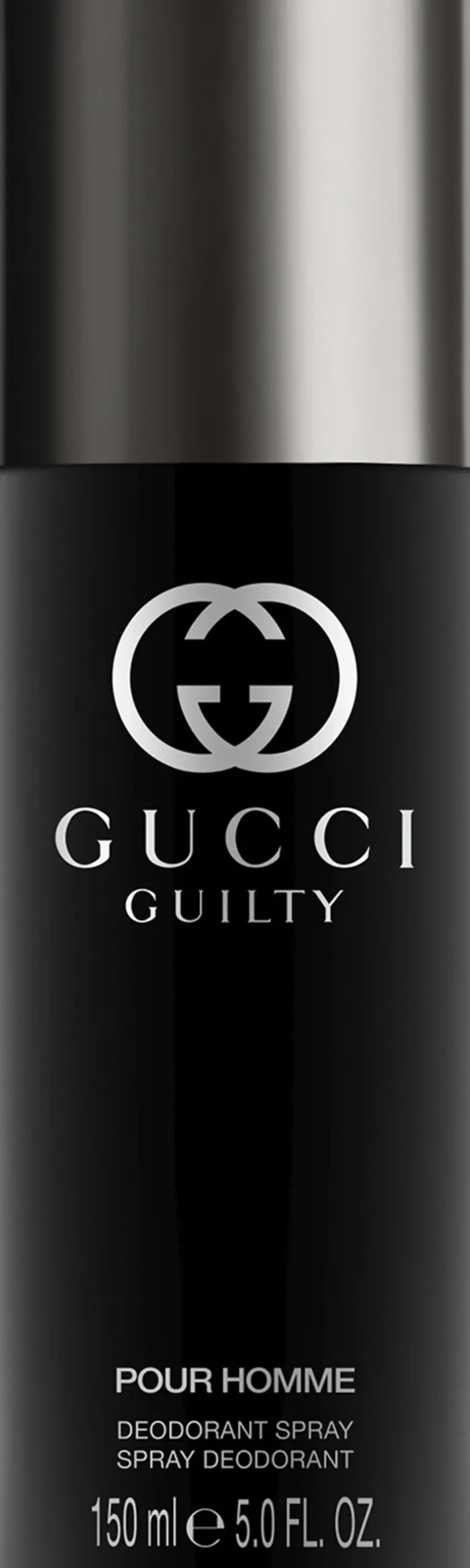 Duftene Gucci Guilty Pour Femme og Gucci Guilty Pour Homme er en invitation til at udforske og acceptere sit sande jeg, og den nye reklamekampagne har de vidt forskellige superstjerner A$AP Rocky, Julia Garner og Elliot Page i hovedrollerne. Gucci Guilty Spray Deodorant for Men er en hyldest til selvværd, venskab og kærlighed i alle former en aromatisk fougère-duft, der inspirerer til et nyt syn på det at være sig selv og leve et autentisk liv. Duften er dekadent og emmer af ren nydelse. Den åbner med en pikant note af pink peber blandet med frisk, italiensk citron. Og hjertenoten falder Gucci Guiltys rebelske idealer helt i tråd med en ukonventionel brug af appelsinblomst en duft, der ellers bruges som et symbol på uskyldighed i feminine dufte. Hvide blomster kombineres med noter af honning og fremhæver duftens noter af neroli og fransk lavendel den blomst, som kvindebedåreren Casanova brugte for at give sine kærlighedsbreve en smuk duft. Duften afrundes med raffineret patchouli, der udvikler sig med noter af læder, grønne planter, træ og røgelse. Duftsløret fascinerer med fyldige og maskuline noter af cedertræ.