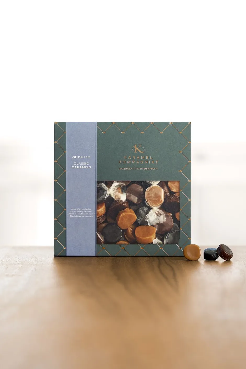 Karamelblanding med Klassisk Fløde, Klassisk Lakrids og Klassisk Chokolade. De kendte, klassiske og populære smage.OBS. Der kan være farveforskel på æsken