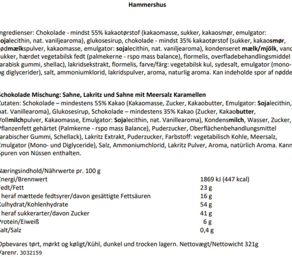 Outlet Hammershus, Chokolade blanding Karameller