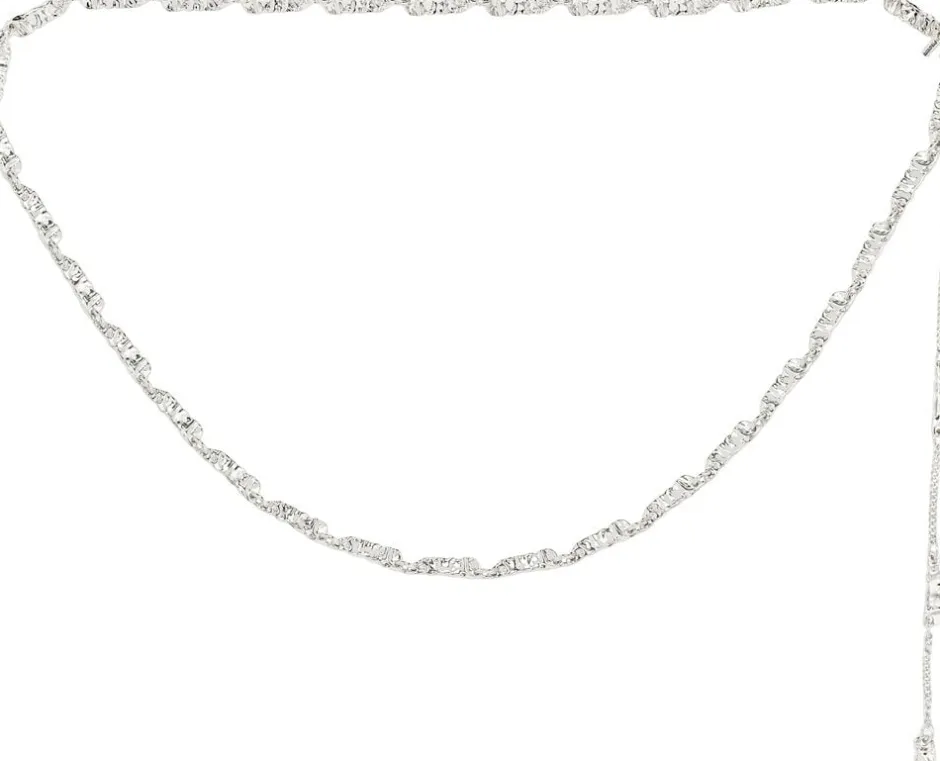 Be your own icon! Sølvbelagt multi chain fra Pilgrims INSTANT-kollektion, designet med flade, rektangulære led og en uregelmæssig struktur, der giver en rå handcrafted feel. Dit perfekte go-to, for et effortless chic outfit. Den 90 cm lange kæde giver et råt urbant look og kan styles som både chain belt eller layered halskæde. Brug den med lavtaljede cargopants og en chunky croped sweater for en city-chic style. Fremstillet af 99% genanvendt materiale – that’s fashion with a conscience and attitude.