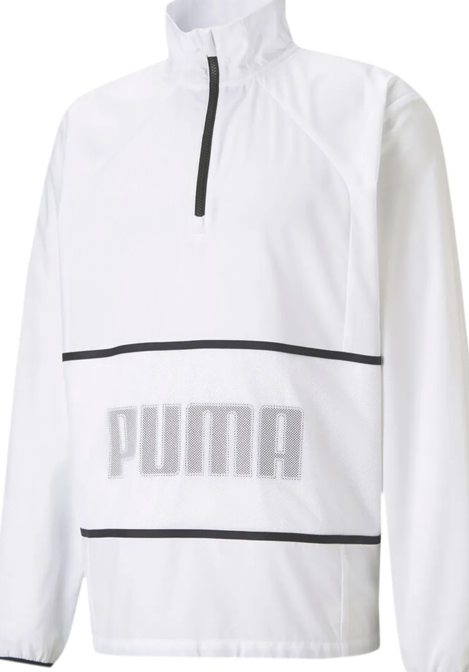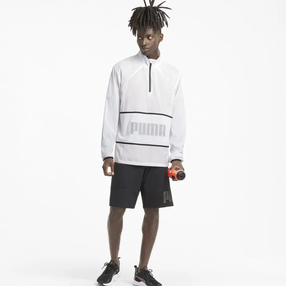 PUMA Train Graphic jakke giver dig den komfort, du har brug for under træningen, takket være dens lette og åndbare materiale. Med lynlås foran og hagebeskytter er det nemt at tage jakken på og af. Elastiske manchetter og en justerbar talje giver dig mulighed for at tilpasse pasformen efter dine præferencer. Jakken har et grafisk moderne PUMA-logo. der tilføjer stil til din træningsgarderobe.