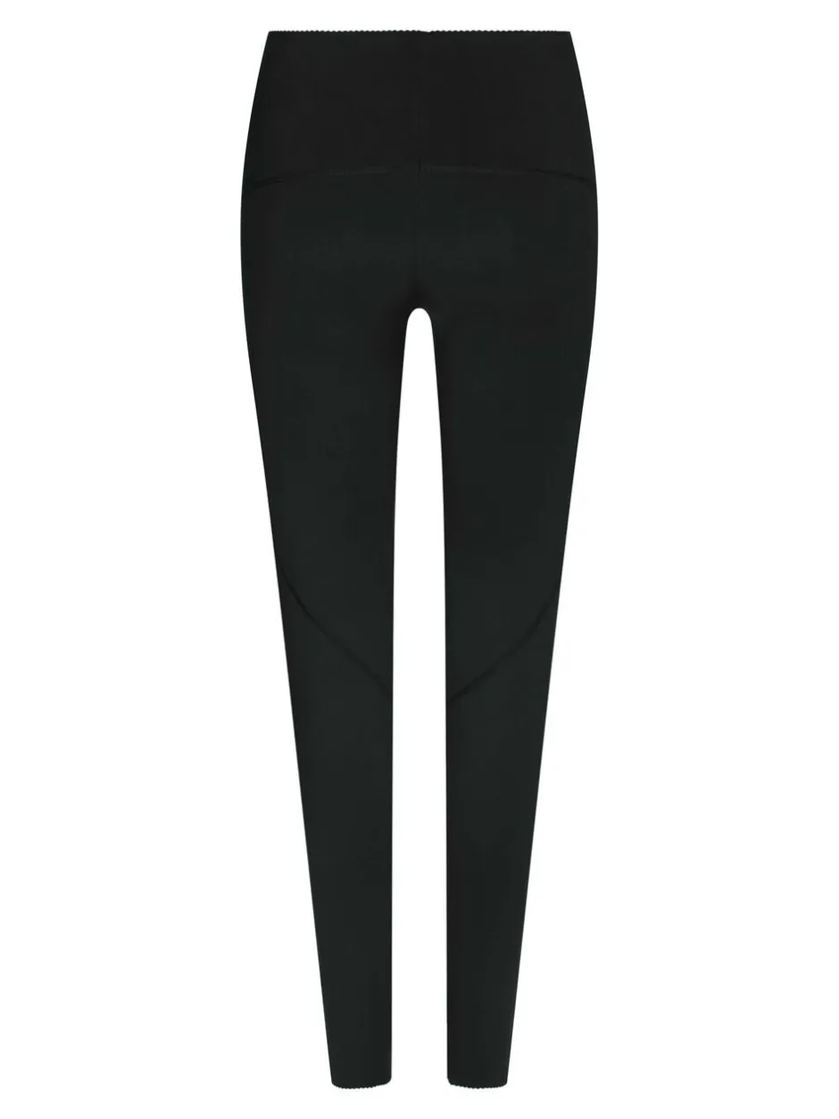 Højtaljede leggings med bølgekant i taljen. De er lavet i et materiale med stræk. Modellen er iført størrelse 36.