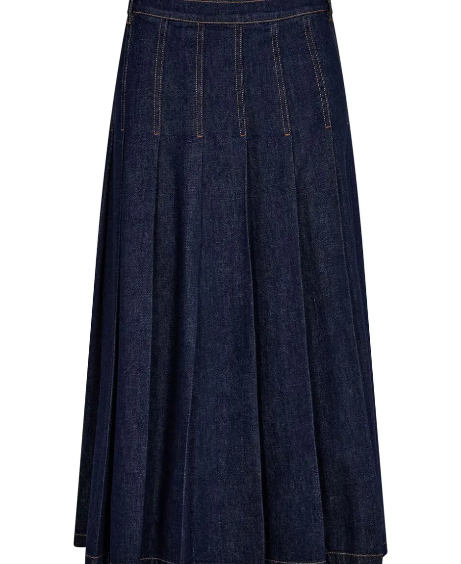 Nederdel fra Weekend Max Mara i en blød kvalitet af 100% bomuldsdenim. Nederdelen har knap- og lynlåslukning i siden samt læg, der giver en fin, plisseret effekt og fremhæver A-faconen.
