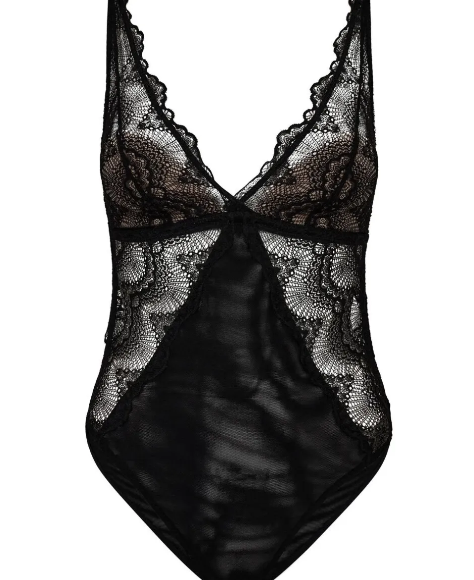 Bodystocking fra Magasin du Nord Collection i den fineste blondekvalitet. Bodystockingen er enkel i modellen med smalle, justerbare skulderstropper, let vatterede skåle, en bred elastik under brystet, trykknaplukning i den forede kile samt en smal hasp-lukning og en dyb V-udskæring på ryggen. En skøn bodystocking i den lækreste kvalitet.