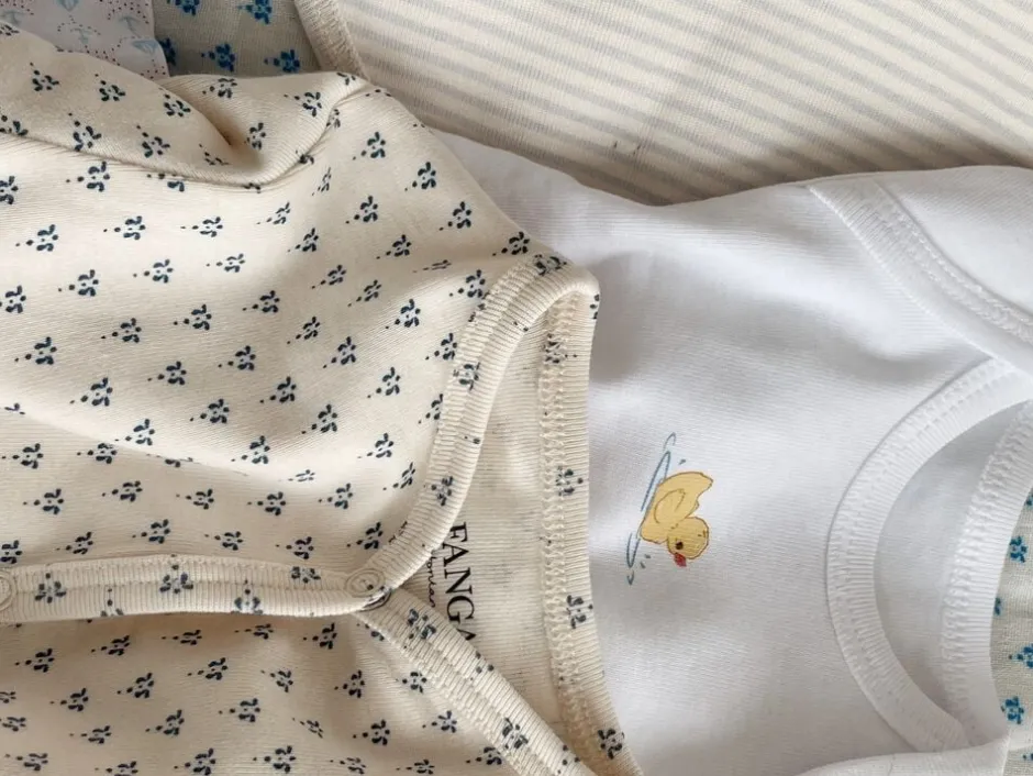 Blød bodysuit i økologisk bomuld med lange ærmer. Fremstillet i en fleksibel ribbe med en praktisk kuverthalsfunktion, der gør det nemt at tage den af og på, samt nemme trykknapper mellem benene til bleskift