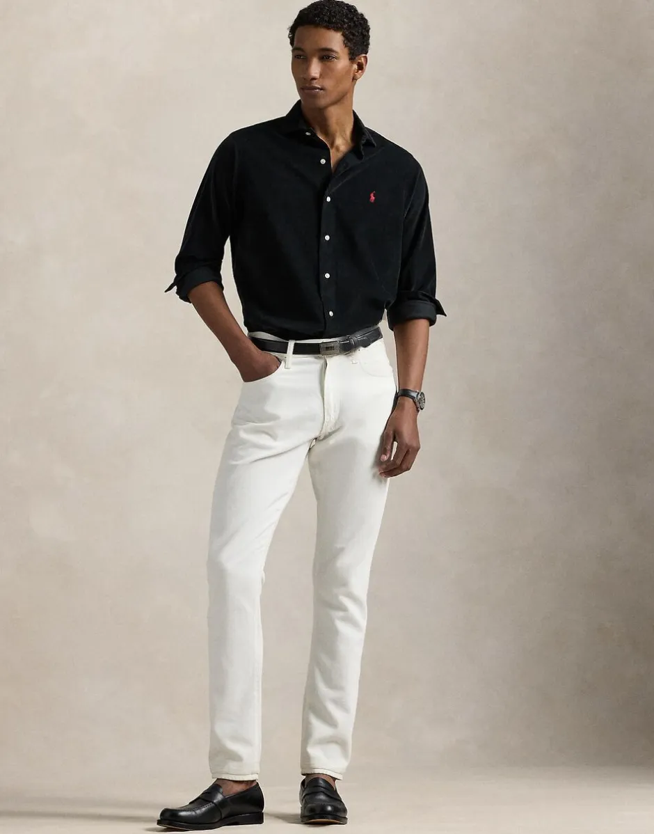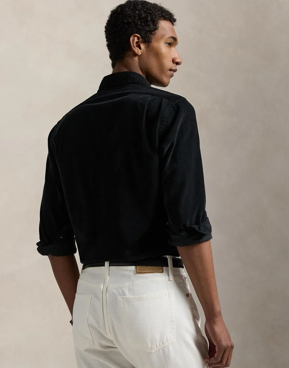 Pinwale bomuldsfløjl giver denne skjorte en raffineret rustikitet. På venstre bryst giver vores ikoniske broderede Pony den et signatur-finish-touch