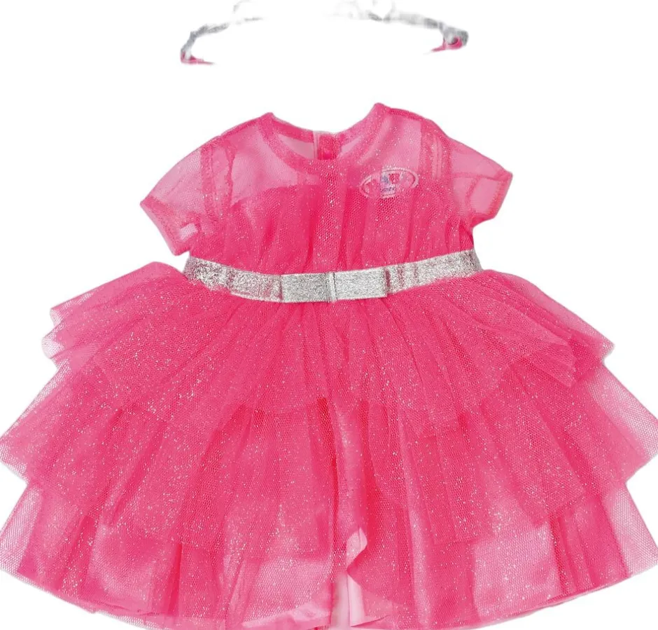 Dette er en drøm af en prinsessekjole Pink tyl, sølvbælte og glimmer over det hele Outfittet fuldendes af elegante sølvsko og selvfølgelig et diadem, så der der med er sørget for et kongeligt look Tilbehør af høj kvalitet til BABY born Giver mulighed for endnu mere afvekslende og langvarig, sjov leg Fra 3 år Inkluderer: – BABY born prinsesseoutfit bestående af glimmerkjole, bælte, pandebånd med diadem og sko