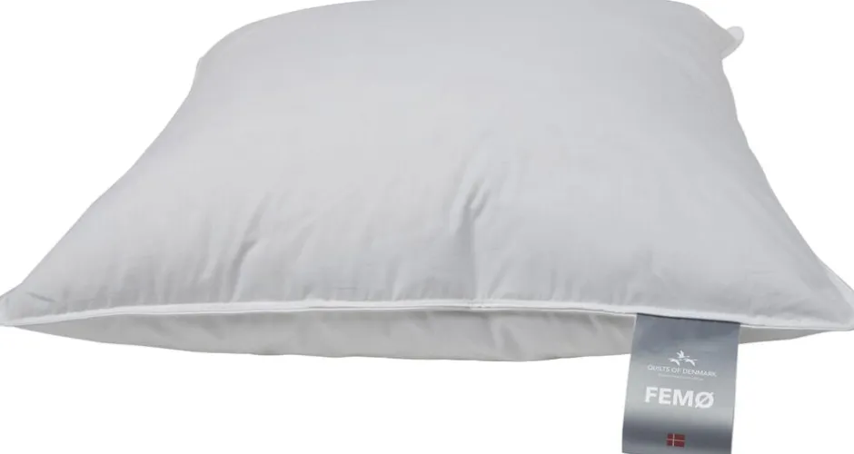 FEMØ puden er en god kvalitetspude i 100% cambric vævet bomuld. 3-kammer puden er fyldt med bløde andedun i de yderstekamre – og småfjer i det midterste kammer,for at give ekstra støtte. Serien omfatter endvidere vinterdyner og 1-kammer puder.