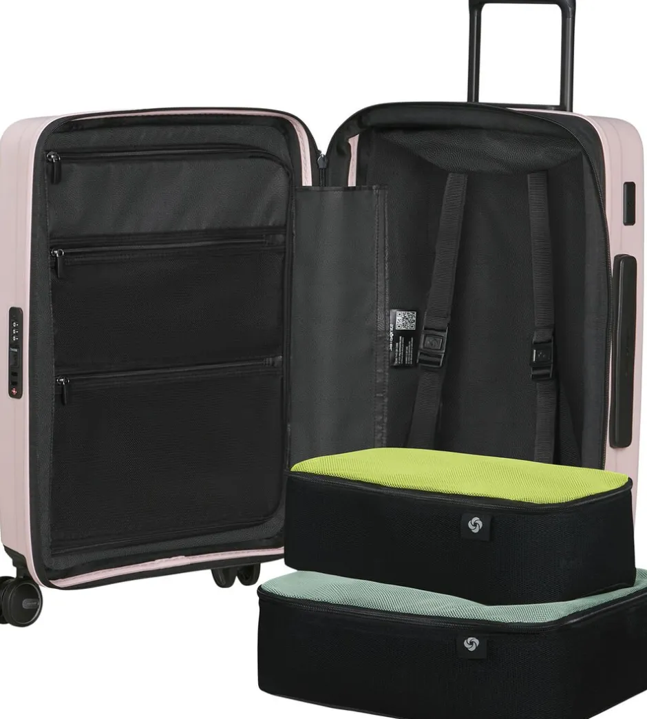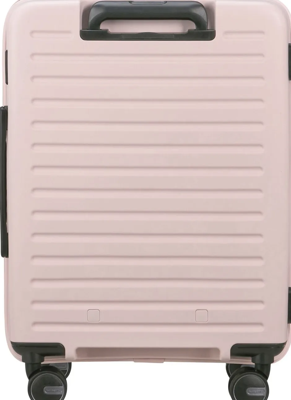 Kabinekuffert med mulighed for udvidelse, polypropylen,4 hjul,TSA lås , indvendig stofforring lavet af genbrugte plastflasker, indeholder 2 pakkeposer, mulighed for personalisering med de medfølgende stickers, dobbelt trollystativ, navneskilt, vægt 2,7 kg,rumindhold 39/45 l, 5 års garanti,55x40x20/23 cm.