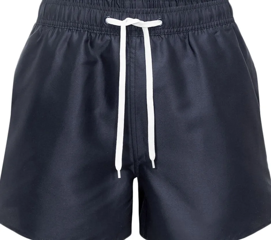Resteröds badebukser i et flot ensfarvet navy. Badeshortsene har den moderne længde til lige over knæene. Veloplagte til din næste badeferie/sommerferie eller en tur på stranden.