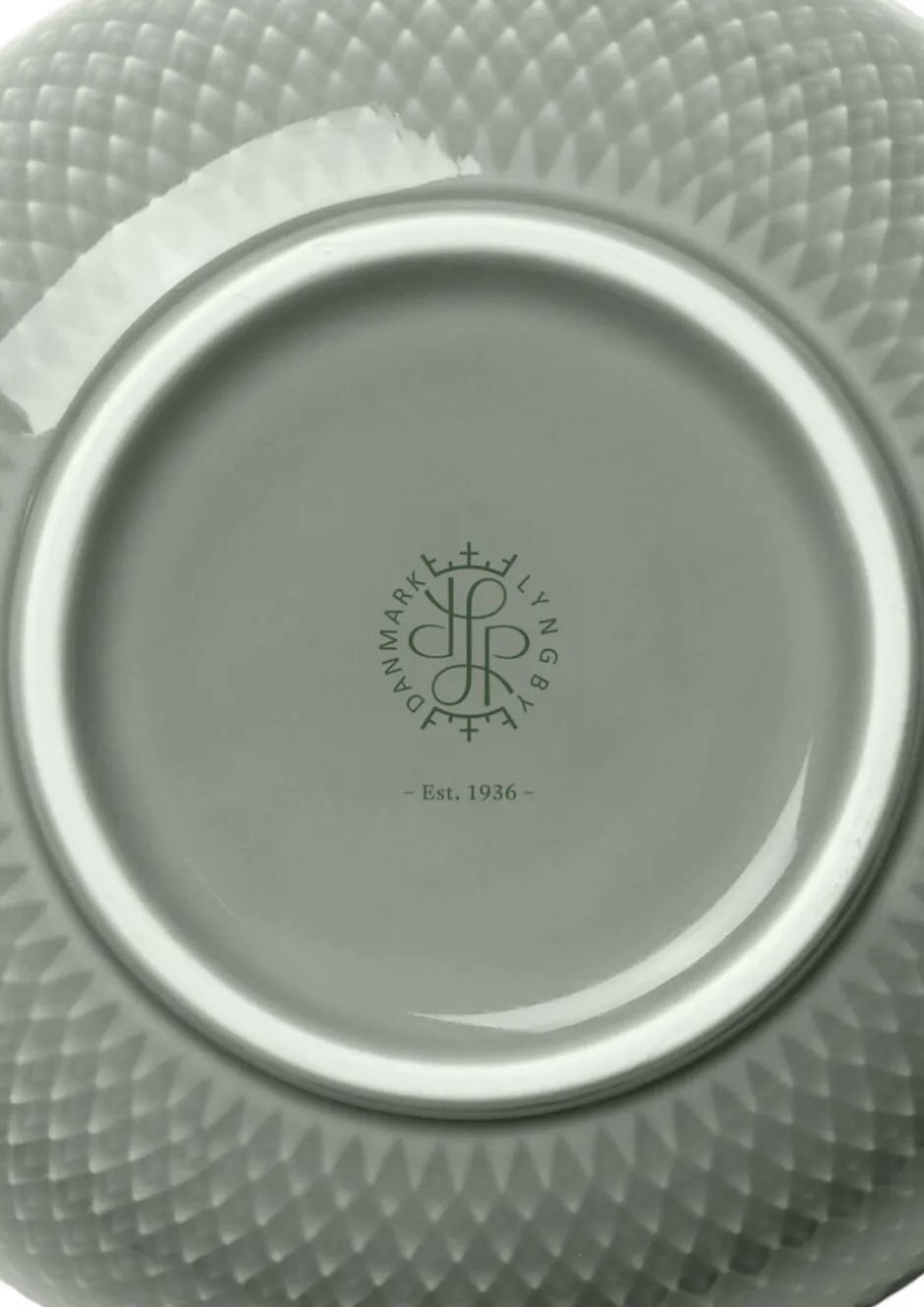 Et jordnært og nærværende udtryk på bordet. Med en farvepalet i fire elegante jordfarver inviterer Rhombe Earth os til at sætte farten ned, være nærværende omkring det vi spiser, dem vi spiser med og at lægge mærke til skønheden i det stel, vi spiser af. Seriens mellemste skål på 13 cm i diameter kommer i to farvevarianter, den beigefarvede marble og denne grågrønne farve moss, der ligesom de to andre afdæmpede jordfarver i Rhombe Earth bringer Rhombe-stellets ikoniske reliefmønster frem på en ny og anderledes måde og indbyder til, at vi går et lag dybere og giver opmærksomhed til maden i skålen, til sanserne og til samtalen med de andre omkring bordet. Alle Rhombe Earth-seriens fire smukke farver moss, marble, clay og slate er ligesom i Lyngby Porcelæns populære Rhombe Color-serie nøje udvalgt af designduoen Stilleben, der består af Ditte Reckweg og Jelena Schou Nordentoft. Brug alle de forskellige Rhombe Earth-dele sammen i din borddækning og lad de forskellige størrelser tallerkener titte frem under hinanden, så de lune farver får lov at tale sammen. Tallerkenerne, krusene og skålene i Rhombe Earth er selvfølgelig også både sammen og hver for sig oplagte som supplement til din Rhombe Color-samling eller i kombination med det klassiske hvide Rhombe-stel, hvor de grå og brune nuancer på de enkelte Rhombe Earth-dele sammen med Lyngby Porcelæns linjer til perfektion vil skabe et både moderne og afslappet udtryk og stå smukt op imod det hvide porcelæn.
