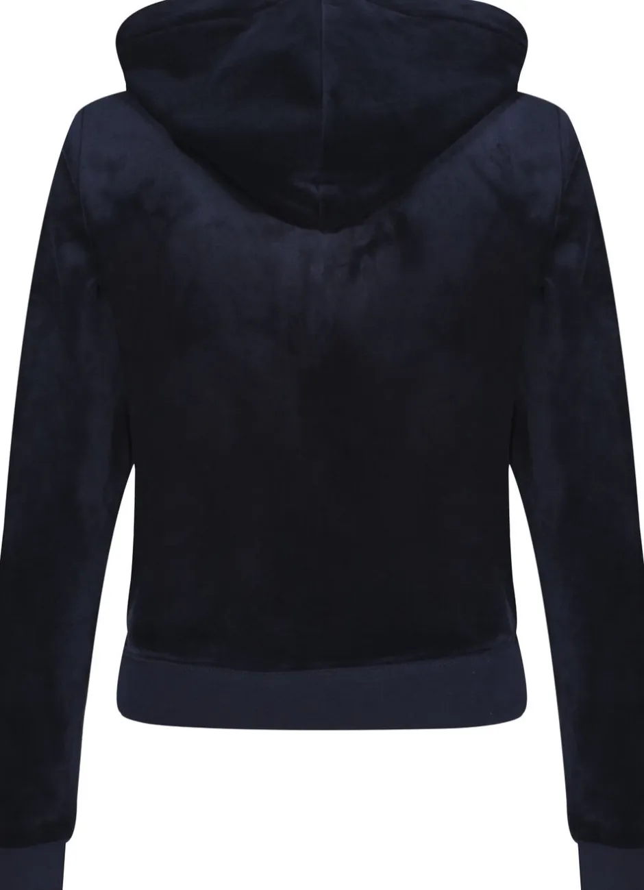 Hættetrøje med lynlås i klassisk velour med sølvfarvet hardware. Slank pasform med kængurulommer og foret hætte