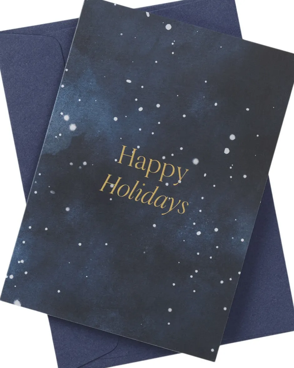 Tilføj en skøn detalje til din julegave med et kort fra Royal Copenhagen. Kortet er smukt dekoreret med stjerner, der stråler klart mod en mørk julehimmel, og tilføjer et magisk strejf til enhver gave især sammen med vores ikoniske gaveindpakning. Kortet er uden skrift og motiver invendigt, hvilket giver mulighed for at skrive en personlig julehilsen.