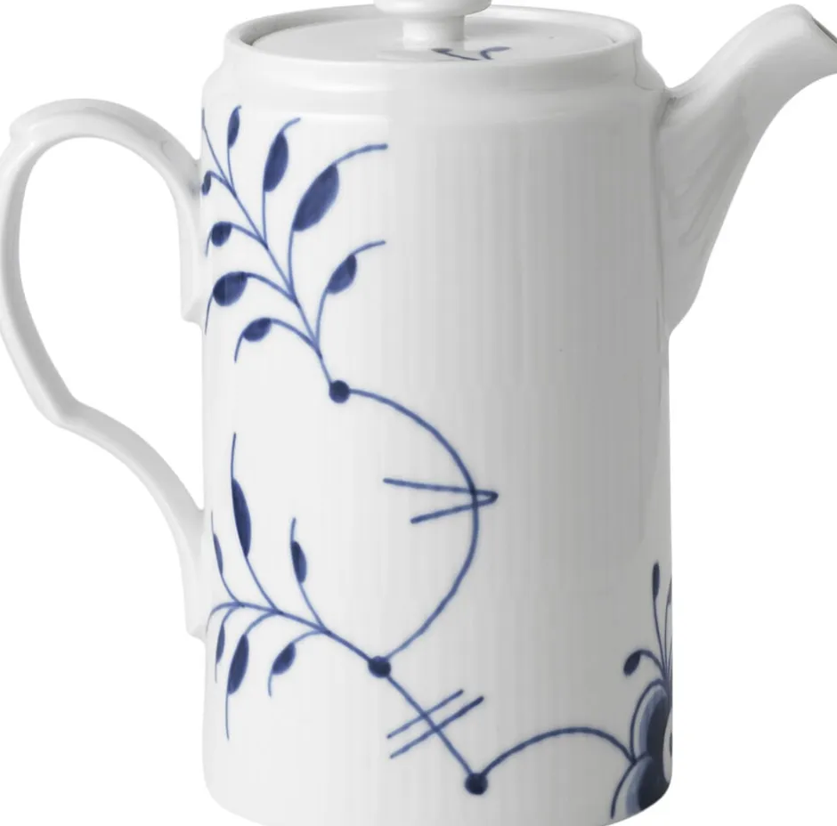 Ofte er nye tilføjelser til Royal Copenhagens stel inspireret af gamle skatte fra porcelænsfabrikkens 245-årige historie, og den nye kande med låg i Blå Mega Riflet er ingen undtagelse. På trods af cylinderformen fremstår kanden moderne i sin slankhed, men designet er faktisk inspireret af en kaffekande fra 1906.