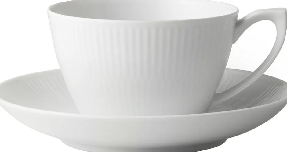 Det hvid riflet spisestel blev designet i d. 19. århundrede. Det er elegant og iøjenfaldende, og gør sig godt, både til hverdag og festlige lejligheder.