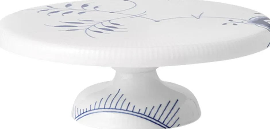 Med inspiration fra Royal Copenhagens klassiske designsprog er det nye fad på fod udsmykket med det evigt klassiske Blå Mega Riflet-mønster.