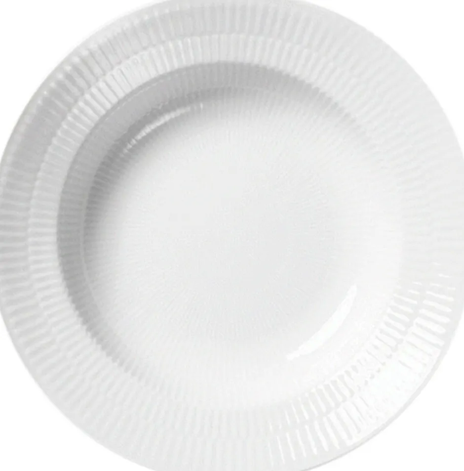 Det hvid riflet spisestel blev designet i d. 19. århundrede. Det er elegant og iøjenfaldende, og gør sig godt, både til hverdag og festlige lejligheder.
