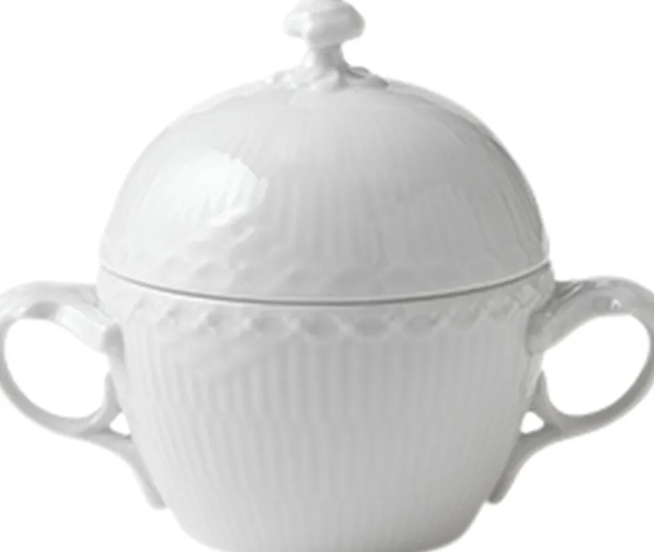 Slutningen af det 19. århundrede var en periode med udvikling og vækst generelt, hvad angår Royal Copenhagens porcelæn. På det tidspunkt redesignede den kunstneriske direktør det Musselmalede mønster og introducerede flere nye tiltag, herunder Hvid Halvblonde. Det Riflede design havde fået tildelt en elegant halvblonde langs kanten for at give stellet et romantisk udtryk. Dekorativt, men simpelt. Hver eneste steldel er glaseret i hånden. Sødt og yndefuldt.