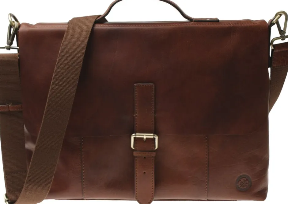 Computermappe model Ålesund fra SADDLER. Tidsløst design udført i lækkert højkvalitets bøffellæder. Indvendigt et PC rum, et rum med lynlås, to stiklommer og to kuglepensholdere. Justerbar og aftagelig rem i textil. Bæredygtigt produceret.