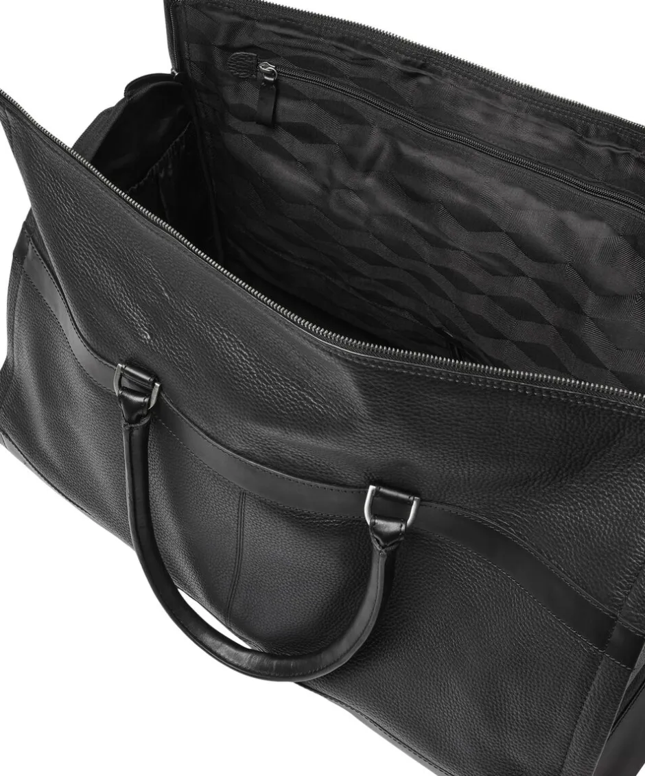 Weekendtaske model ORLANDO fra Saddler. Denne smarte taske har indbygget dragtpose til jakkesæt eller lignende og rum til sko. Perfekt til den travle forretningsmand. Udvendigt er der to rum med lynlåslukning. Justerbar og aftagelig skulderrem i textil med detaljer i læder. Bæredygtigt produceret. Storlek: W55, H34, D27 cm. Materiale: Højkvalitets bøffellæder.