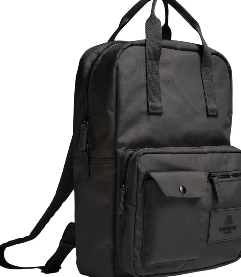 Darla Backpack Monochrome fra Markberg er en praktisk rygsæk fra vores populære Darla serie, som er produceret i 100% genanvendt polyester. Rygsækken er vandafvisende og lavet i et ekstra slidstærkt materiale. Rygsækken lukkes med lynlås og har en større samt to mindre lommer på fronten. Indvendigt har rygsækken en lille lynlåslomme og en større åben lomme, der kan anvendes til en computer. Derudover har rygsækken også en lynlåslomme bagpå. Markberg logoet på fronten er lavet i vegansk silikone, hvor der ikke er brugt animalske materialer. Tasken for er 100% genanvendt polyester. Mål: 27 cm x 38 cm x 12 cm