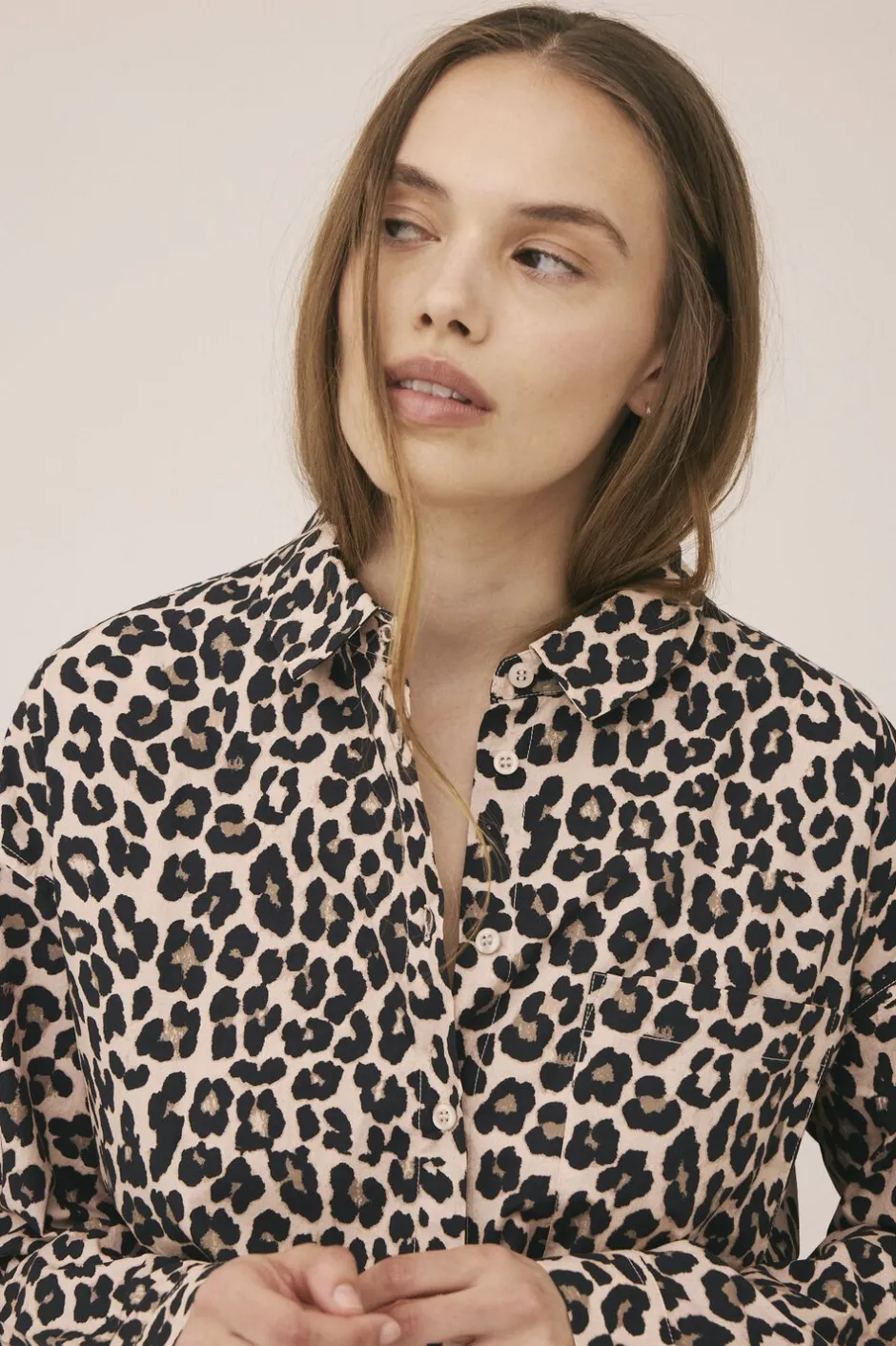 Skjorte fra Magasin du Nord Collection i den blødeste kvalitet af 100% økologisk bomuld med GOTS-certificering. Skjorten har det fineste, stribede print, knaplukning på fronten, en enkelt brystlomme, afrundede slidser i siden samt lange ærmer med ’drop shoulders’, der fremhæver den vide pasform. En skøn skjorte i en blød kvalitet. Se også de andre fine styles i samme serie.