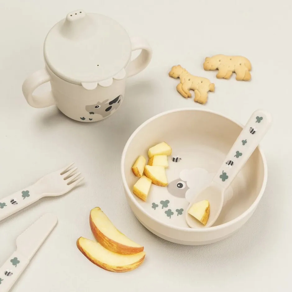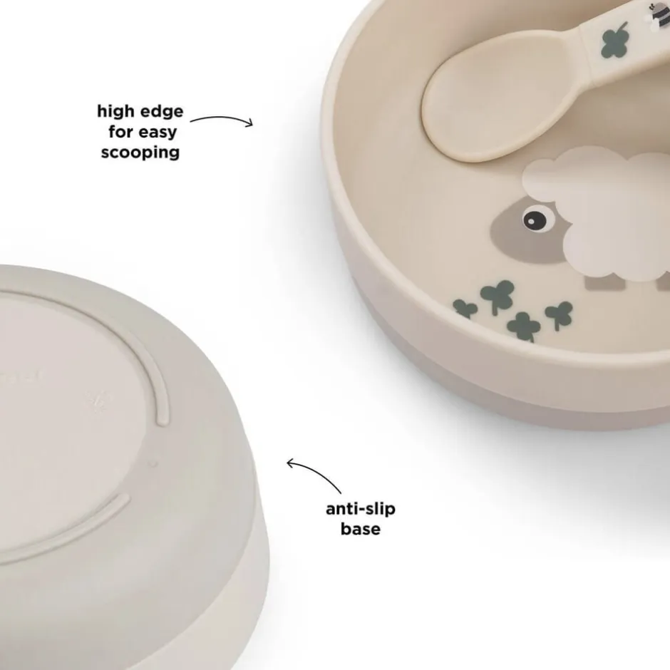 En praktisk antiskrid-base sikrer, at skålen bliver på sin plads under måltidet