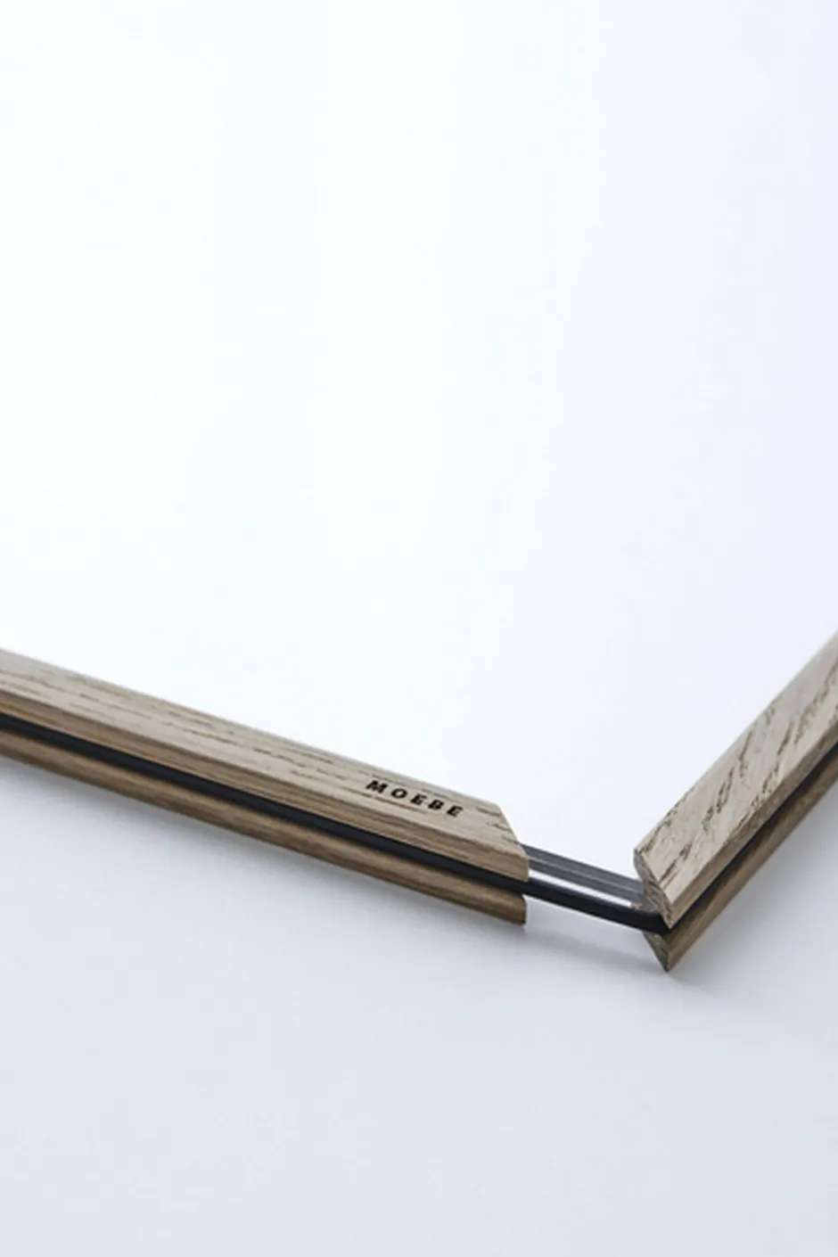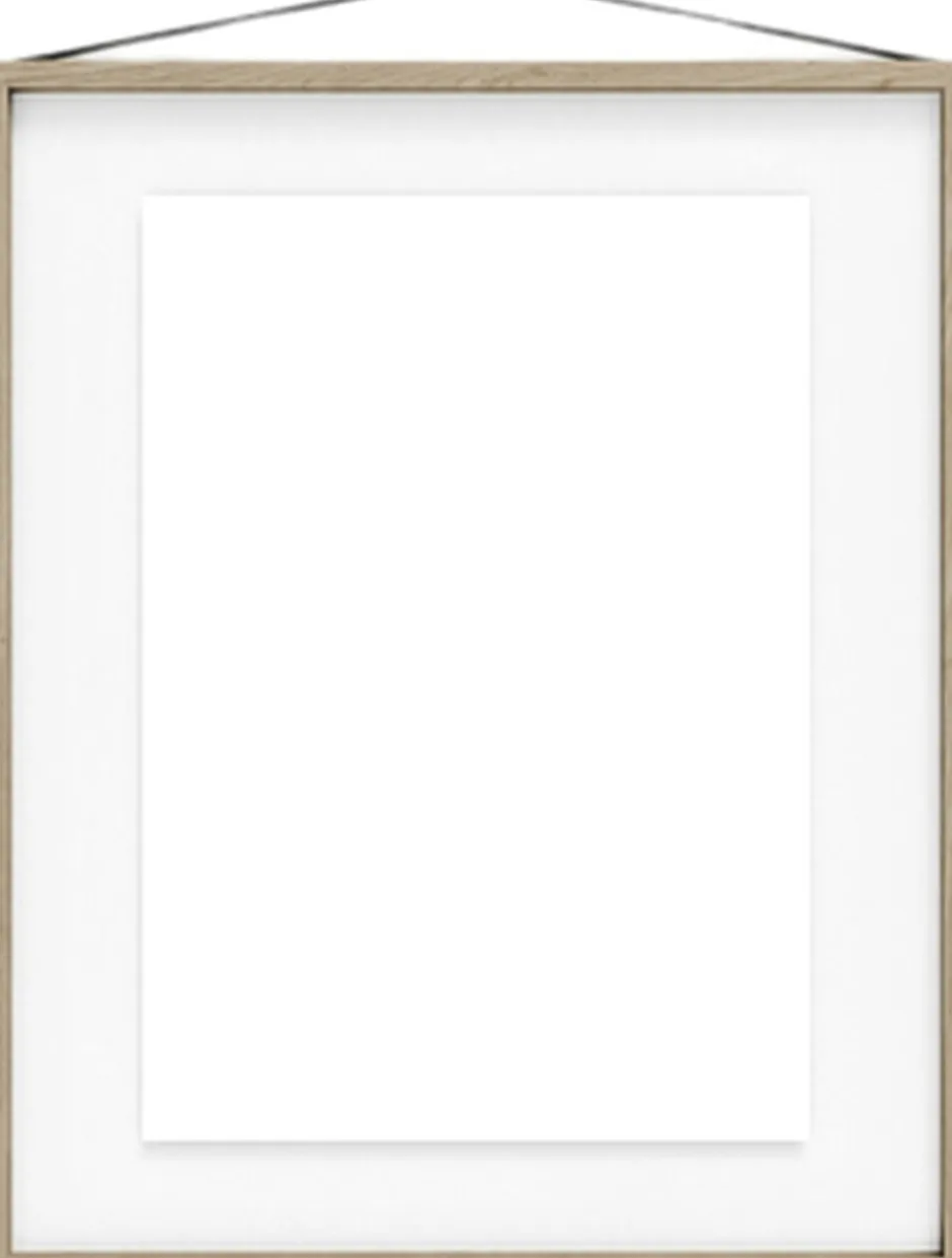 Frame consists of two pieces of acrylic glass, four lists, and a rubber band. The rubber band both holds the frame together and serves for hanging the frame on your wall. The simple but clever construction allows the frame to be hung in either direction or even to be viewed from both sides, giving your artworks or photographs the focus they deserve. Choose from ten different finishes and six different sizes (40×50 cm & 50×70 cm available only in oak & black).