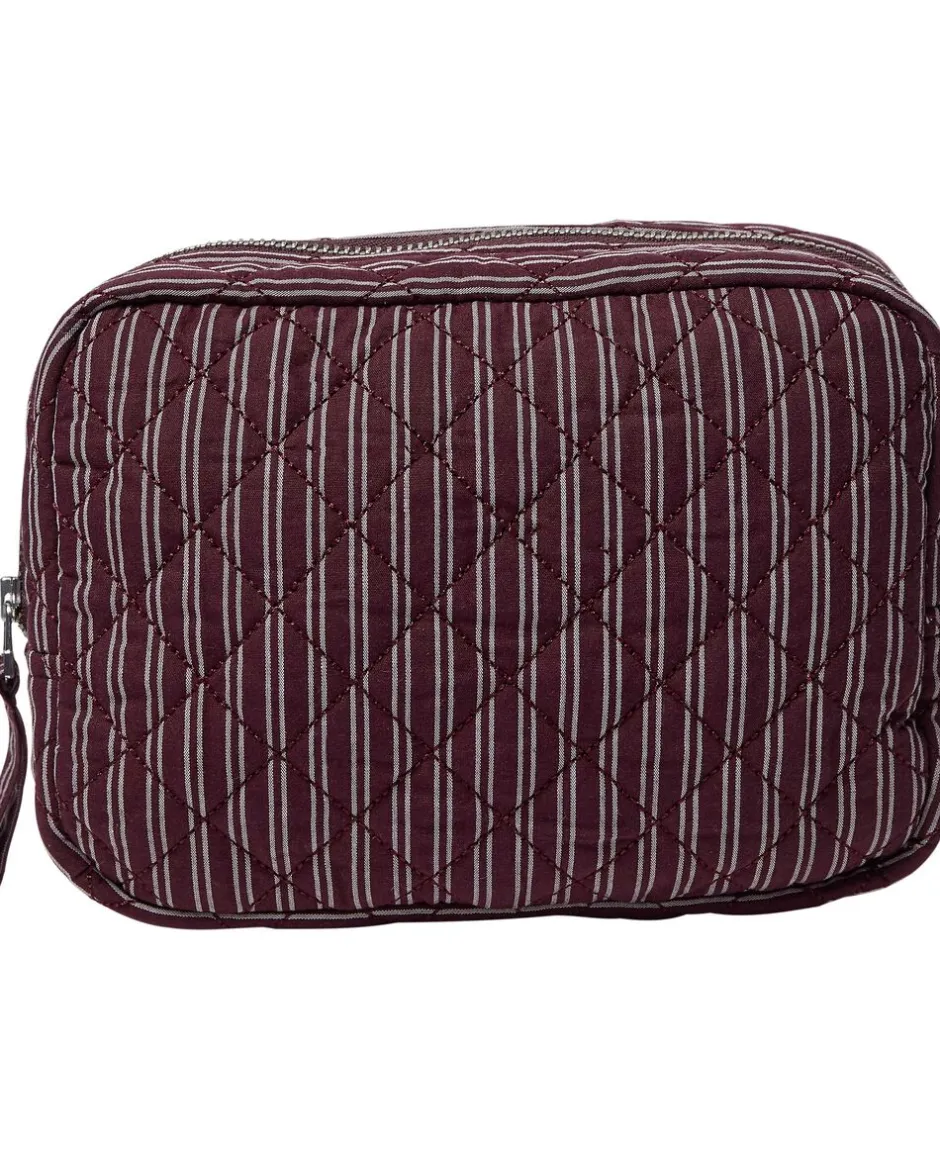 Toilettaske fra Magasin du Nord Collection i den blødeste kvalitet af 80% økologisk bomuld med GOTS-certificering. Toilettasken består af ét stort rum med lynlåslukning samt mindre inderlommer. Derudover har toilettasken fine vatterede syningsdetaljer og et stribet print. En skøn toilettaske i den lækreste kvalitet.