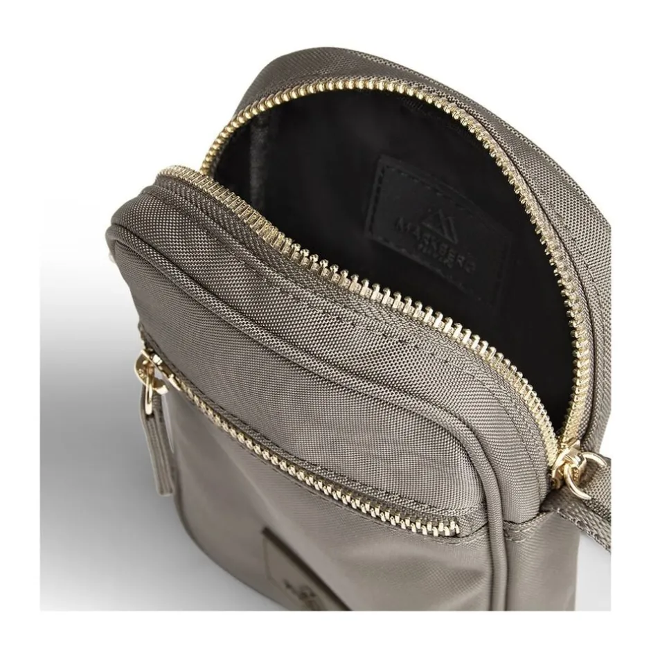 State Mini Crossbody Bag fra Markberg er en smart og praktisk mobiltaske, der er produceret i 100% genanvendt polyester. Inde i tasken finder du et rummeligt hovedrum, der nemt kan rumme en stor mobiltelefon, samt tre praktiske lommer til kreditkort, så du altid har det vigtigste lige ved hånden. Hovedrummet lukkes sikkert med en lynlås, og på fronten er der en ekstra lille lynlåslomme, perfekt til småting som nøgler eller lip balm. Taskens justerbare polyesterstrop giver dig mulighed for at tilpasse den til din personlige stil og komfort, så du kan bære den, som det passer dig bedst. Med målene 17 cm x 11 cm x 3 cm er State Mini Crossbody Bag både kompakt og rummelig, hvilket gør den ideel til at tage med på farten. Lining i 100% genanvendt polyester understøtter den bæredygtige profil, så du kan være både stilfuld og miljøbevidst. Vælg State Mini Crossbody Bag fra Markberg og oplev, hvordan praktisk design kan være både elegant og ansvarligt.